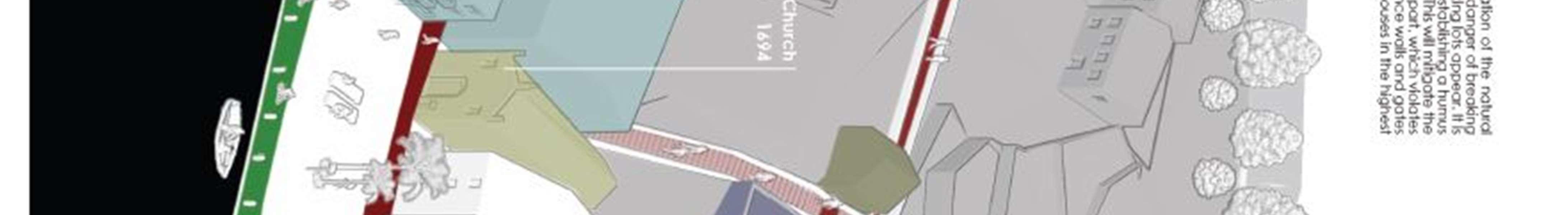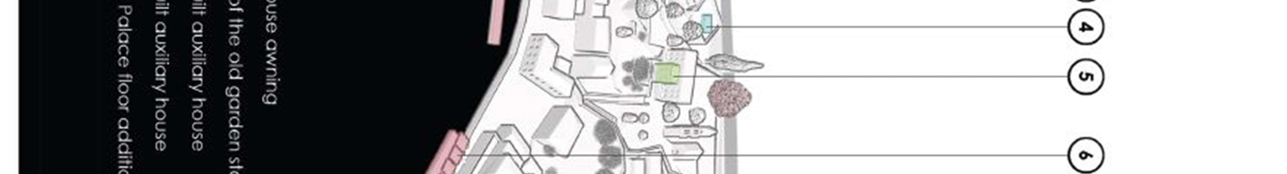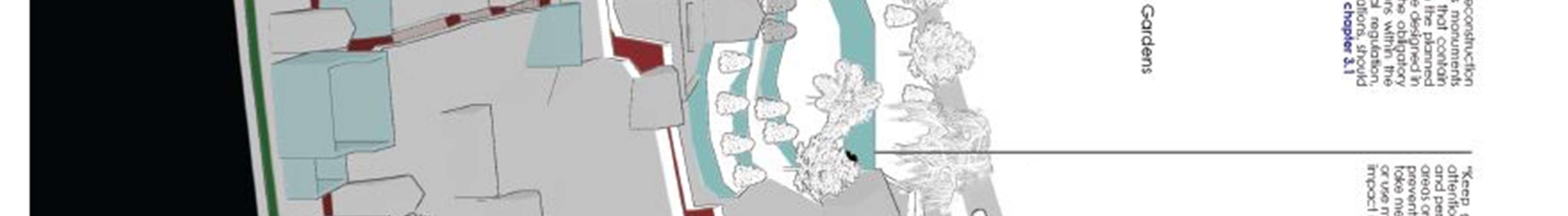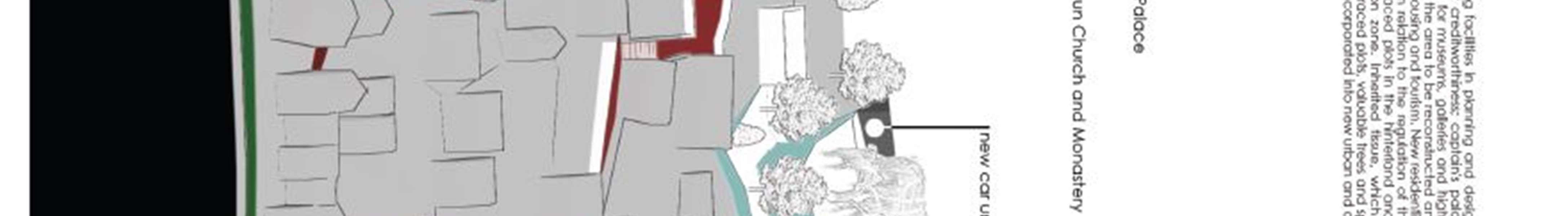 Conceptual solutions forthe reconstruction model- the ruins of the complex were made forthe following urban plots: