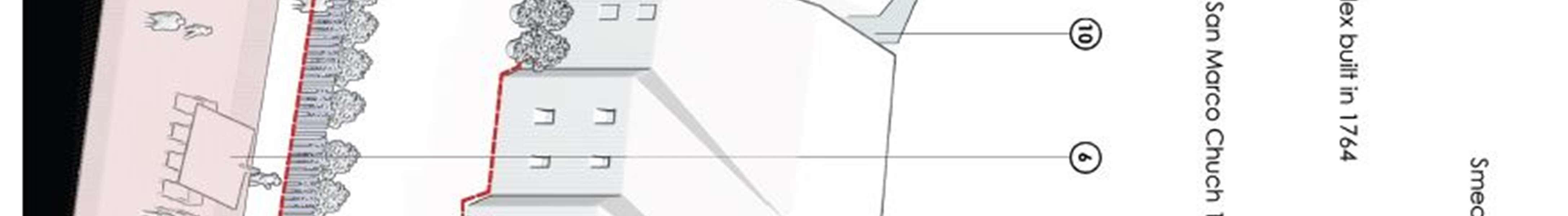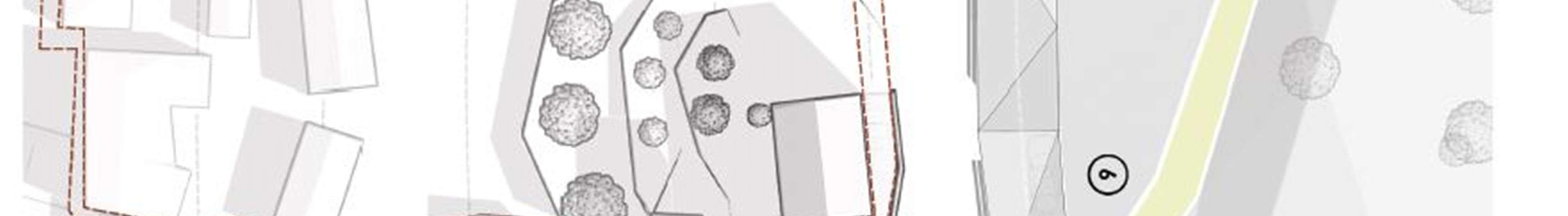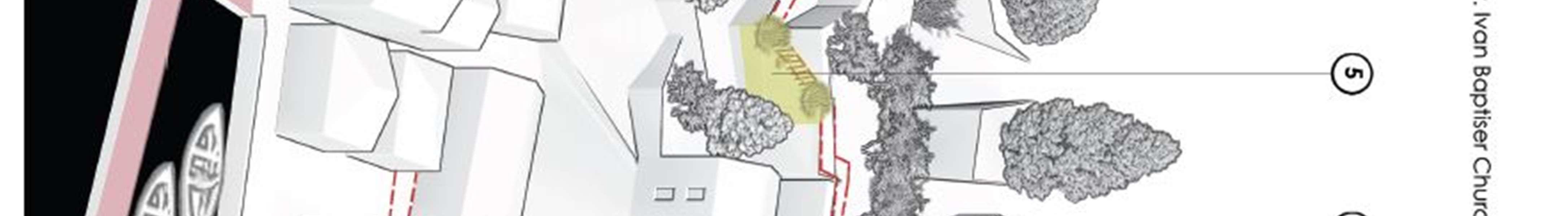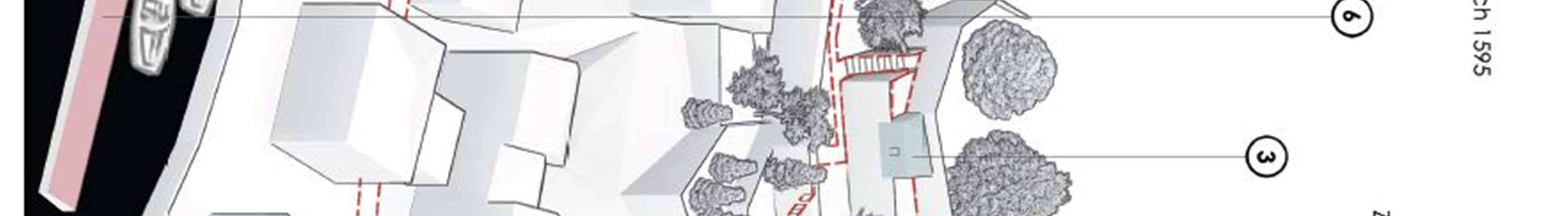 Conceptual solutions forthe reconstruction model- the ruins of the complex were made forthe following urban plots:
