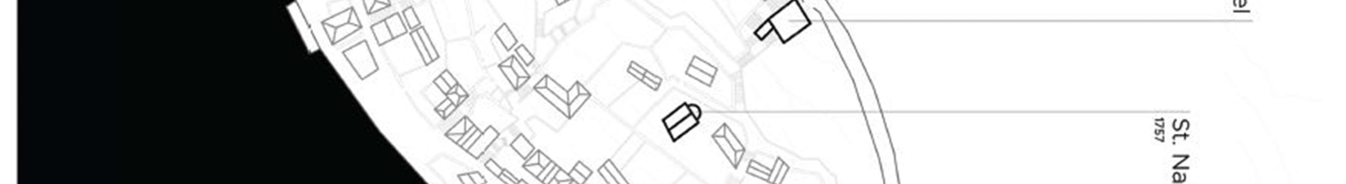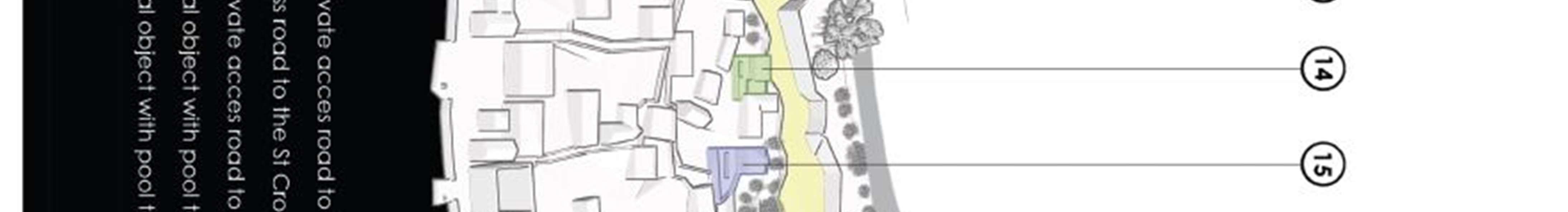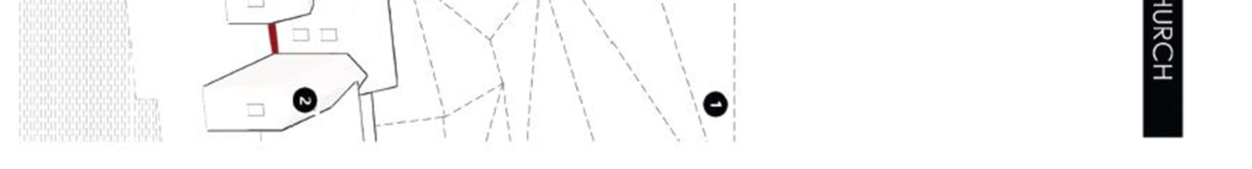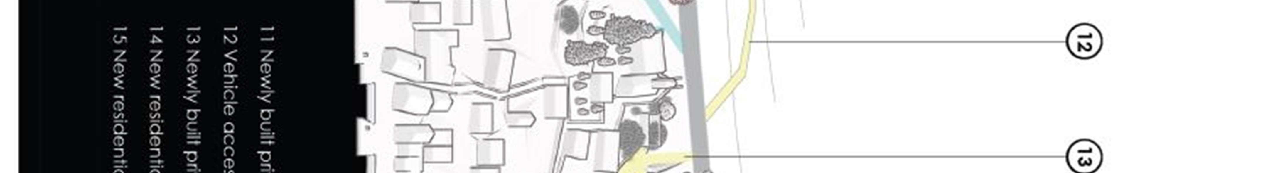 Conceptual solutions forthe reconstruction model- the ruins of the complex were made forthe following urban plots: