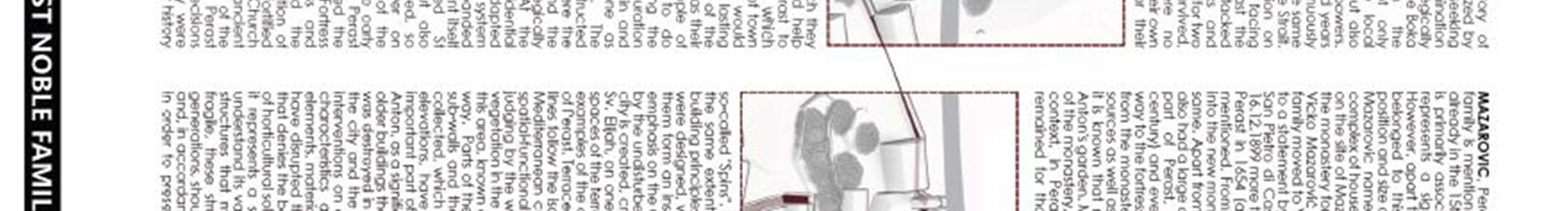 In Perast, one of the oldest architectural units on the east coast of the Adriatic, which has become synonymous with world-renownedmaritimeaffairs,theplayfulhumanimaginationmadestoneandstonelifebybuildingglitteringpalaces. The totality of the landscape is completed by: two small islands: Our Lady of Skrpjela and Sveti Djorde, unique architecturalandhorticulturalmonumentsonthispartofthecoast.Thereliefandconfigurationoftheterrainconditioned the construction of picturesque stairways and sub-walls of indigenous stone and the formation of narrow and long terracesfilledwithearth,whichwas usuallydeliveredbyships,inthesamewayasothermaterials for buildingpalaces. and steep stone steps (steps), carried to create gardens and gardens around family houses. The landscape of Perast consists of two basic elements: relief with vegetation and the urban complex of the city with islands. The panorama of the city imprinted in the characteristic landscape represents the characteristic image of Perast. The city structure is permeated by a series of stairs that lead or start from the sea, squares, squares, to palaces, spaces with amazing views, terraced gardens. On the west and east sides of Perast, by the sea and above the main road, there are plantationsofcoastalpine(Pinusmaritima)andcypress(Cupressussempervirens).Theunderlyingvegetationconsists of numerous specimens of macchia, such as laurel, pomegranate, fennel, black ash and other types of indigenous vegetation. Theconnectionbetween these two greenareason theoutskirts of thecityismade up of asmall numberof pine, cypress and palm trees, planted individually within private gardens or along squares and squares. As a consequence of the urban structure, the green fund in the area of Perast consists of private gardens and orchardsGiardini. Throughout history, gardens have been shaped as works of art. Most often, where living conditions allowed,