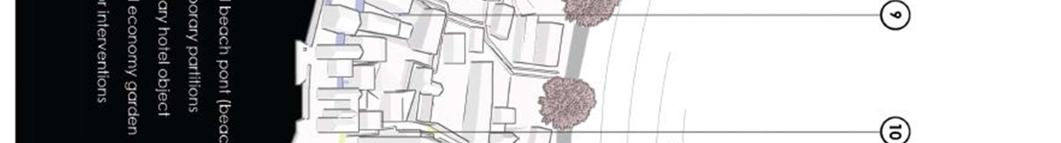 spatialdefinitionofbeachinterventiononthemainlandby the coastalwall, apedestrian-car path andclearlydefined entrances to the beach.