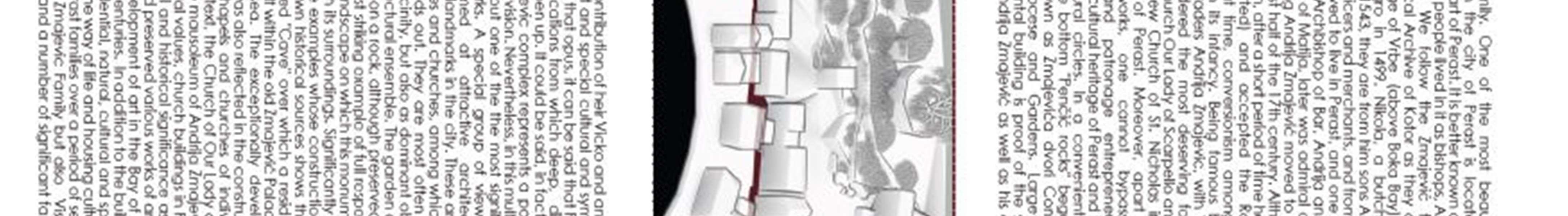 Perast is rich in attractive places and locations from which deep, diverse and dynamic views open up. It could be said that each position in the city represents a point of interesting and unique vision. Nevertheless, in this multitude it is possible to single out a few of the most significant points and benchmarks. From the coastal road, the islands of Sv. GeorgeandOurLadyofSkrpjelo,whoarealsothemainrappersandsymbolsofthecity.Mostofthecoastoftheisland is well visible and the exception is the eastern part of the bay "Luka", on the stretch between plots no. 326 and 360, where foresight is not possible. Fantastic views of the islands can be seen from the western part, Penčići Bay. Panoramic views from Perast on two islands blended with the panorama of the city or the undeveloped green background of Kostanjica on on one side or Stoliva on the other. Particularly attractive are the views of the city from the Chains when the islands are incorporated with the bell tower of the chapel of Our Lady of the Rosary, in the area of Penčić, next to the palace of Zmajević. Another important landmark, which dominates the silhouette of the city, and one of themost significant architectural features ofPerastisthe bell tower of the church ofSv.Nicholas. Itis55mhigh and can be seen from a large number of places in the city, especially in the part of Penčići. Almost along the entire Velja Street there is a view of the bell tower, and also on the path from the monastery of Sv. Antuna towards the intersectionwithVeljaStreet.Movingonthemainroad,healsostandsoutasasignificantbenchmark.Aspecialgroup ofviewsarethosethatareaimedatattractivearchitecturalcomplexes,aswellaslandmarksinthecity.Theseare,first of all, the most important palaces and churches, among which the Zmajević palace stands out. They are most often seen from the immediate vicinity, but also as dominant objects within a smaller architectural ensemble. There are a