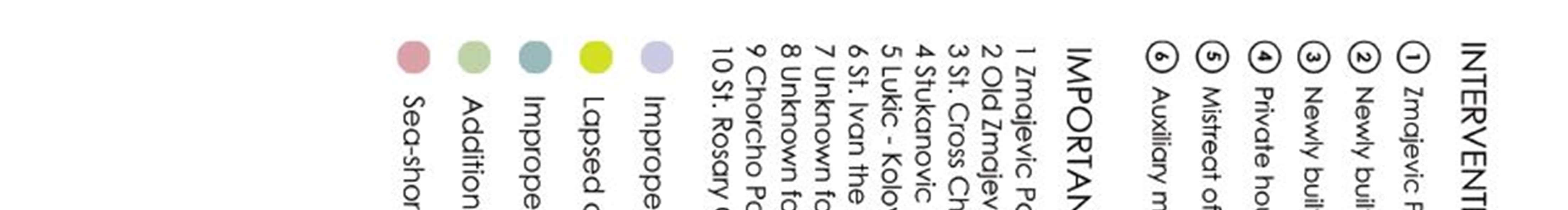 If we keep in mind that the architectural heritage largely represents the economic power of its creators, it can be concluded that Perast was at the peak of its prosperity at the end of the 17th and the beginning of the 14th century. Bearing in mind that most of the architectural heritage has been preserved to this day, this is a direct impact on the value of the potential that Perast has. Since there is no developed planning document, Urban Project, for the city of Perast, and guided by the determinant from the Spatial Plan of the Municipality of Kotor, it was only possible to reconstructthebuildingsintheexistingdimensionsandexistingpurposes.Inthiscontext,theProtectionServiceissued conservation conditions for the reconstruction of existing buildings inthe existing dimensions, for residential purposes. The onlyinterventions were relatedto thepossibilityofreconstruction oftheatticspaceintoanattic for living,following the exampleof traditional solutionsrepresentedin the architectureof Perast.In addition to the conservationconditions and approval of the project documentation as well as the Decision on reconstruction, works on the reconstruction of buildings were performed, but there were often interventions to expand the dimensions of existing buildings. Interventionsareexplainedbytheneedforlargerandmorecomfortablelivingspaceandaremanifestedbyupgrading, upgrading,formingterracesandstairsalongthefacade,increasingthenumberandproportionsofopenings,reshaping the roof solution and roof openings, etc. In this way, the performed works, in addition to entrusted to unprofessional construction operations, appear irregularities in terms of design, stylistic inconsistencies and misused materials. The ignorance and incompetence of the contractors, as well as insufficientcontrol of the competent institutions have led to cases of devastation of buildings and the immediate environment that leave permanent traces in the urban fabric and degradetheurbanenvironment.Devastatedbuildingsaredefinedasbuildingsonwhichrecentinterventionshavebeen carried out that are inconsistent and inappropriate to the spirit of traditional architecture, ie that are not harmonized or endangerthearchitectureand/orambienceofthecity.Theruinsthatwereinspectedwerevalorized.Inaccessibleand inconceivable ruins as well as ruined remains were not valorized. No irregularities in design were singled out, such as completely inadequate urban furniture, street lamps, garbage cans, containers, although Perast deserves completely autonomous, design and artistic urban equipment.