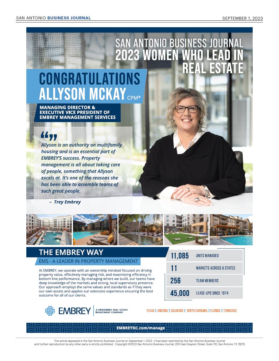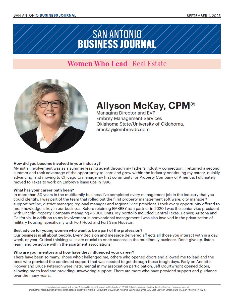 San Antonio Business Journal | Women Who Lead - Real Estate | Allyson McKay