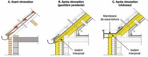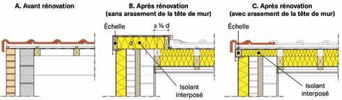 • Mur creux rénové avec un ETICS : raccords avec une toiture inclinée.