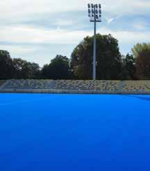 principale. « Nous avons prolongé la tribune existante vers le terrain, avec deux nouvelles extensions d’environ 500 places, faisant passer sa capacité de 2.300 à 2.800 sièges. Sur les deux extrémités de cette même tribune, nous avons également construit deux nouveaux volumes annexes pour les sanitaires. De vieilles tôles vertes de bardage ont été remplacées par des bardages en imitation bois. Une société espagnole est venue placer de nouveaux sièges aux couleurs du drapeau belge. Vue du ciel, la disposition des sièges représente le dessin d’une vague », indique le conducteur de chantier. Depuis cette tribune principale, la vue sur le terrain bleu est imprenable. Comme on dit, ça en jette ! « Saviez-vous que les oiseaux confondent souvent de type de terrain avec une étendue d’eau et viennent s’écraser dessus ? Ici, heureusement, nous n’avons pas encore eu le cas », raconte en guise d’anecdote Amadéo Danielis.