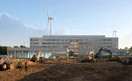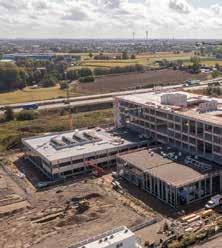 La construction du campus a débuté fin 2024. Actuellement, la structure en béton est déjà terminée. Lors de notre reportage, 80 % de la menuiserie extérieure et des fenêtres du rezde-chaussée étaient déjà réalisées. Les dalles au sol devaient bientôt être coulées. L’ensemble du bâtiment devrait être étanche au vent et à l’eau d’ici février 2026, et le complexe devra être entièrement opérationnel pour mai 2027. Ce campus de carrière est le deuxième de la série. En 2018, le premier, le campus T2 à Genk, a ouvert ses portes. Entre-temps, la phase de dialogue est déjà en cours pour les nouveaux à construire à Gand et Anvers. Alors que le VDAB deviendra propriétaire du campus à Roulers, il sera locataire des bâtiments à Anvers et à Gand. Dans ces villes, il est demandé aux consortiums intéressés de ne pas seulement assurer la conception et la construction, mais aussi de proposer les terrains appropriés.