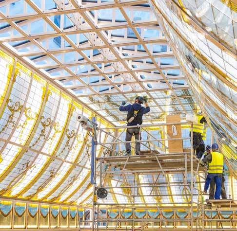 een bravourestuk en is volledig herbouwd zoals die er oorspronkelijk uitzag, maar volgens de huidige normen op het vlak van waterdichtheid en isolatie. Wij deden daarvoor een beroep op gespecialiseerde restaurateurs die onder onze begeleiding aan de slag gingen.”