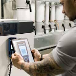 chaude dans des bâtiments de plus grandes dimensions. Les pompes à chaleur ont une puissance allant de 16 à 89 kW (A-7/W35). Un maximum de 16 unités peuvent être raccordées en cascade et une combinaison avec d’autres sources de chaleur pour former un système hybride est également possible. La pompe à chaleur air/eau peut être utilisée comme solution flexible pour les nouveaux bâtiments et pour moderniser le système de chauffage des bâtiments existants. Les applications possibles sont les bâtiments de production, les ateliers, les entrepôts ou les usines, les bâtiments administratifs, les écoles, les restaurants et les hôtels.