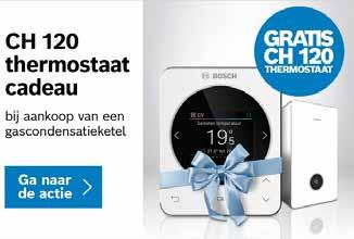 Tussen 15 september en 15 december 2025 belonen we jouw vakmanschap met een extra voordeel. Registreer een van de deelnemende Bosch condensatieketels in het Bosch Partner Portal en ontvang gratis een CH120 kamerthermostaat. Ontdek de deelnemende condensatieketels op de actiepagina. Hoe werkt het? Registreer je toestel in het Bosch Partner Portal en ontvang de thermostaat op jouw bedrijfsadres (zoals vermeld in het Partner Portal).