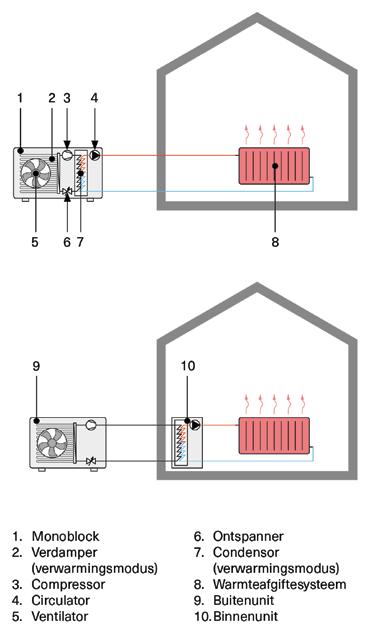 • Monoblock warmtepomp met alleen buitendeel (+ regelmodule binnen)