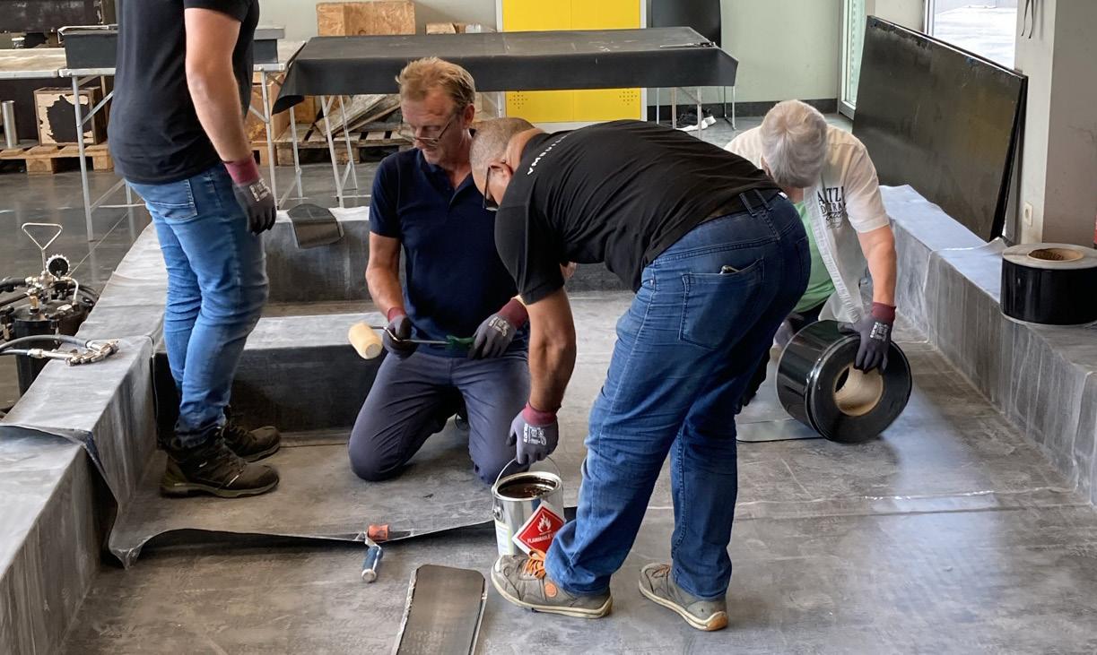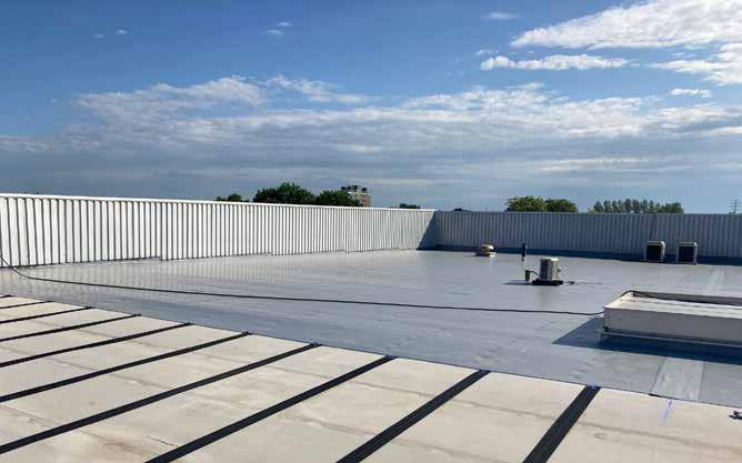 het kantoorgedeelte van ca. 800 m² ook nog met kiezel bedekt was. De draagstructuur van de fabriek is Steeldeck, het kantoor is van beton. Aanvankelijk werd er gevraagd naar een duurzame EPDM-afdichting met het oog op de plaatsing van zonnepanelen, maar wij stelden een mooi alternatief voor dat bijzonder geschikt is voor het kostenefficiënt renoveren van industriedaken. Dankzij dit systeem met Rhepanol hfk hoeft het bestaande dak niet afgebroken te worden en het biedt nog tal van andere voordelen.”