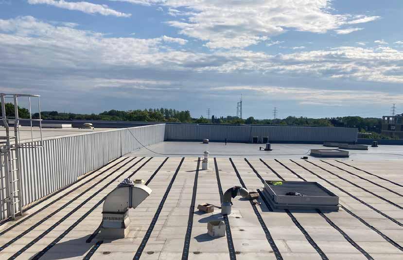 gettes teelt, behoort dan ook tot de mogelijkheden. De meeste groendaken vandaag zijn echter extensief, vanwege hun beperkte gewicht.” VM Building Solutions levert afhankelijk van het type groendak een gepast type EPDM voor de dakafdichting: het klassieke membraan voor de extensieve groendaken, een wortelvaste variant voor de intensieve. “Na de installatie kan je niet meer bij de dakafdichting. Om het risico te vermijden dat je het groendak opnieuw moet weghalen, is EPDM best in class. EPDM is ideaal als afdichting aangezien het membraan van nature ondoordringbaar is voor fijne plantenworteltjes. Bovendien heb je met EPDM minder naadverbindingen, wat het risico op lekken ook al reduceert. De waterdichtheid is cruciaal, precies daarom bekijkt Buildwise de invoering van de test op waterdichtheid van groendaken.”