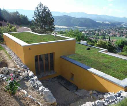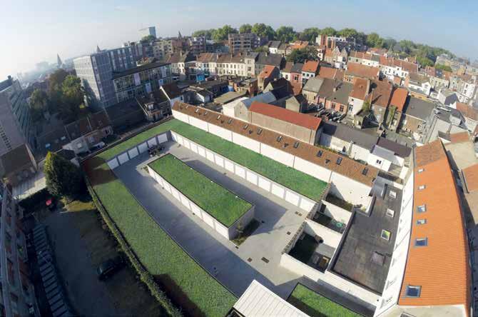 ringsstelsel, waardoor het overstromingsgevaar en de belasting van de waterzuiveringsinstallaties vermindert. Daarnaast draagt het dit type daken bij tot de verhoging van de verscheidenheid aan plant- en diersoorten en zijn ze zeer bevorderlijk voor de luchtkwaliteit en voor de vermindering van fijnstof.” Verder spelen ook energiebesparende argumenten een rol, met dank aan de warmteregulerende functie. “In de winter verliest de woning minder warmte en in de zomer blijft ze koeler”, gaat Sylvie Baelen verder. “In de zomer is de warmteregulatie optimaal, omdat de lagen droger zijn en ze hierdoor ook de warmte goed weerkaatsen. Het isolerend effect is een extra troef in combinatie met zonnepanelen. Het reduceert het rendementsverlies van zonnepanelen dat ontstaat door overmatige hitte aan het oppervlak. Groendaken reflecteren tot 30% van het zonlicht.”