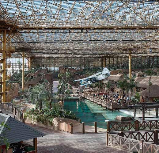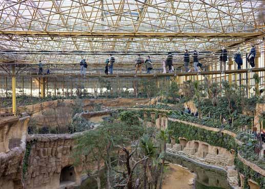 onderliggende loods geplaatst, zodat de constructie het gewicht van de daktuin kan dragen. Ook de centrale waterpartij met een bekken in natuursteen werd strategisch boven een kolom gepositioneerd.