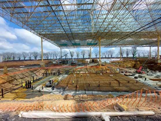 Over het volledige dakoppervlak ligt gemiddeld 40 cm substraat, maar in de zone met de heesters loopt dat op tot meer dan 1 m. Dat is nodig omdat die planten dieper wortelen. De heesters, die extra verankerd zijn om windkrachten te weerstaan, werden bovenop de kolommen van de