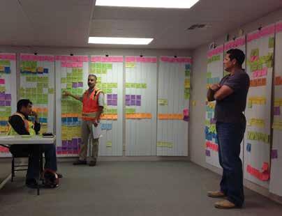 Bij lean plannen stellen partners samen de planning op. Hierbij ligt de focus op een betere samenwerking en het maken van goede afspraken om tot een betrouwbare planning en voorspelbare uitvoering te komen. Deze techniek wordt momenteel voornamelijk toegepast in de uitvoeringsfase, waarbij de verschillende partners in de werfkeet post-its op planvellen plakken (zie afbeelding 1). Maar deze techniek kan eigenlijk overal toegepast worden waar mensen samenwerken, dus ook op kantoor of in een magazijn