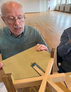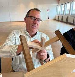 ↑ ➑ Willy Simoens controleert of alle onderdelen mooi gladgeschuurd zijn en de kanten netjes gebroken zijn. Het hout mag nergens splinteren!