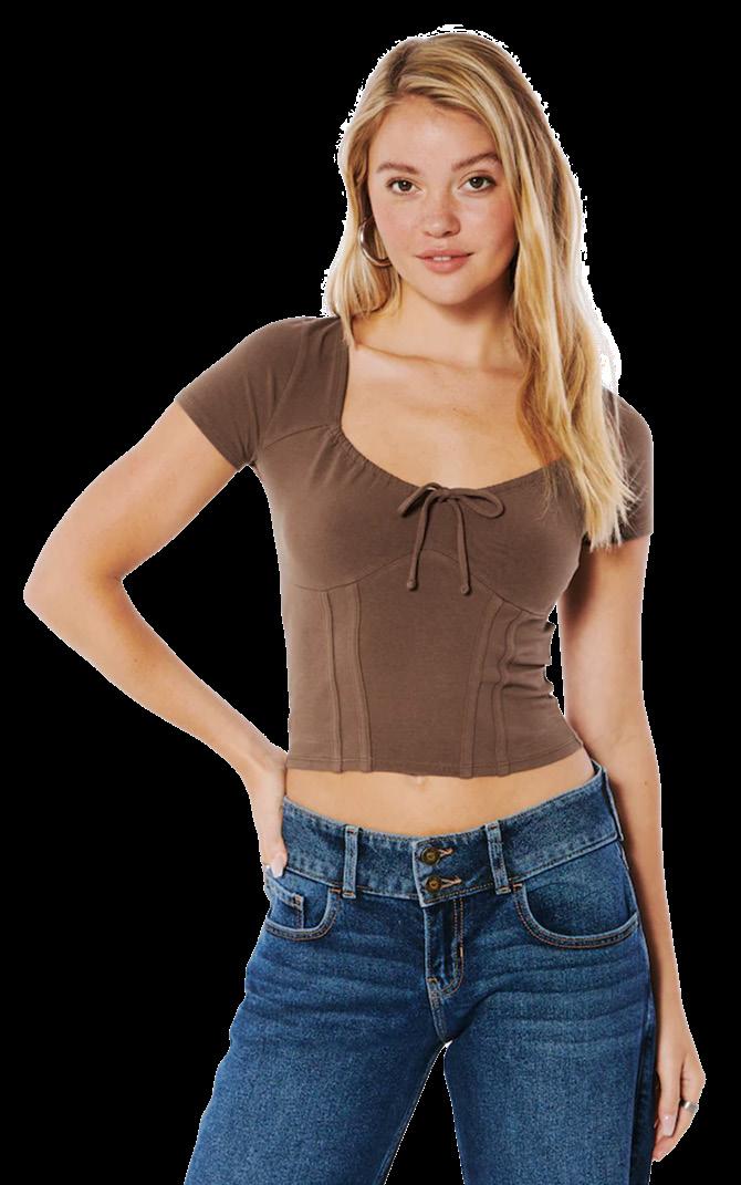 The side cinch crop top is a ‘cash cow’. It is a classic, basic must have item which is always high in demand in all seasons. It is also a very affordable garment, and there are variations of colour online and in-store.