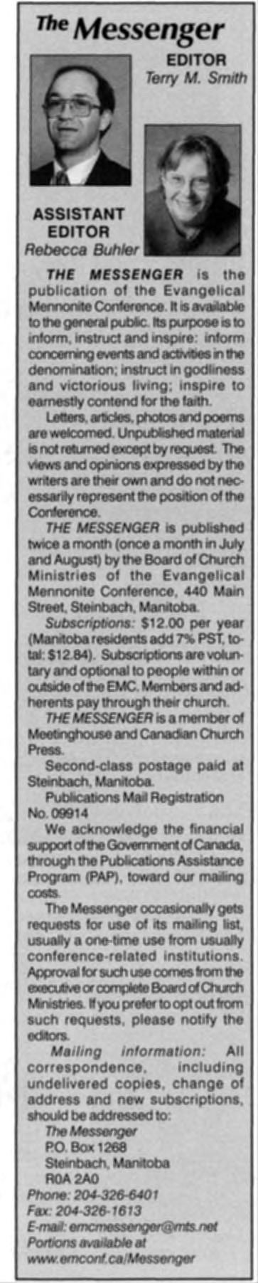 PAGE 16 THE MESSENGER Evancelical Mennonite Conference ~ Box 1268, 440 Main Street Steinbach, MB ROA 2AO