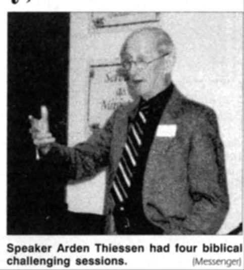 Speaker Arden Thiessen had four biblical challenging sessions.