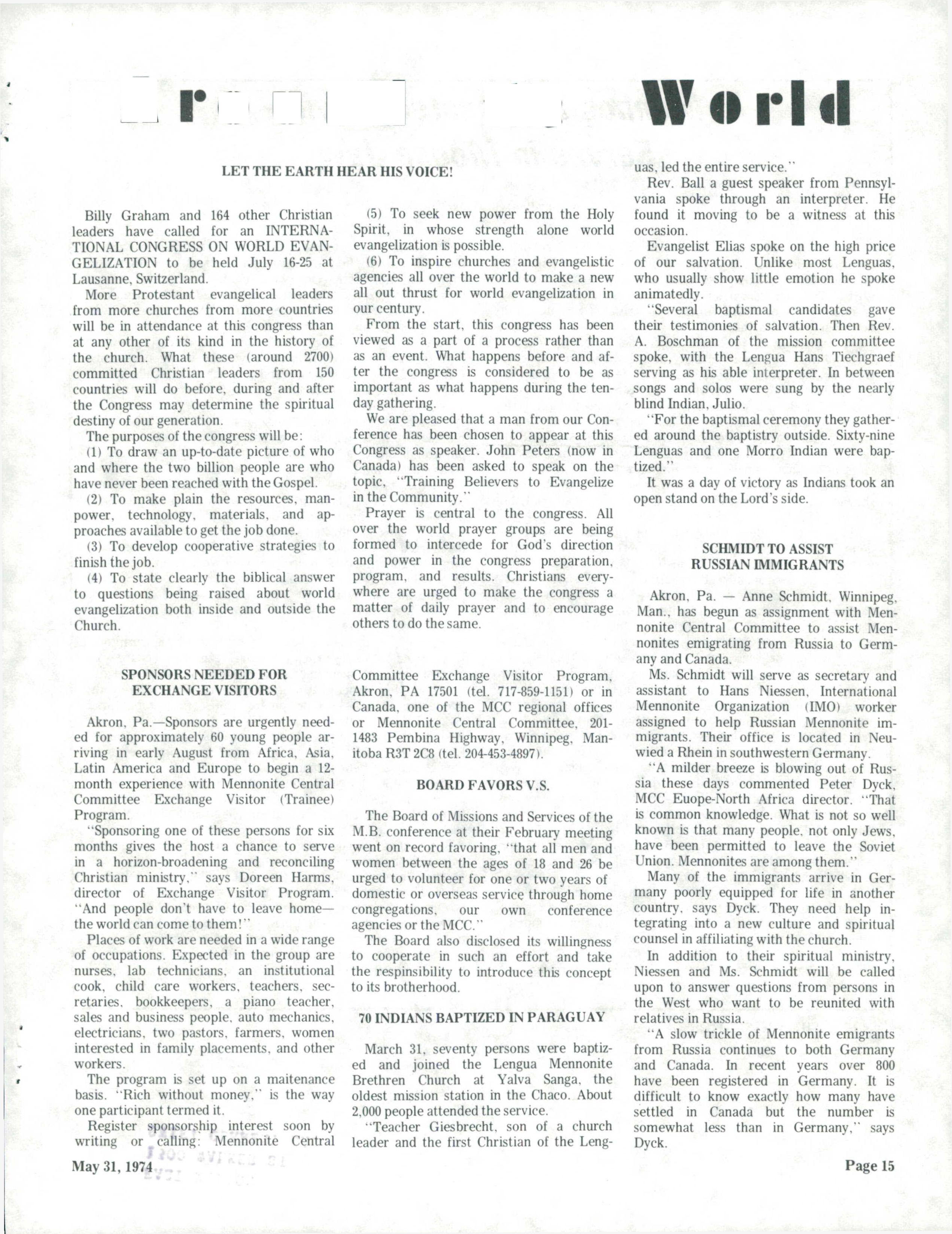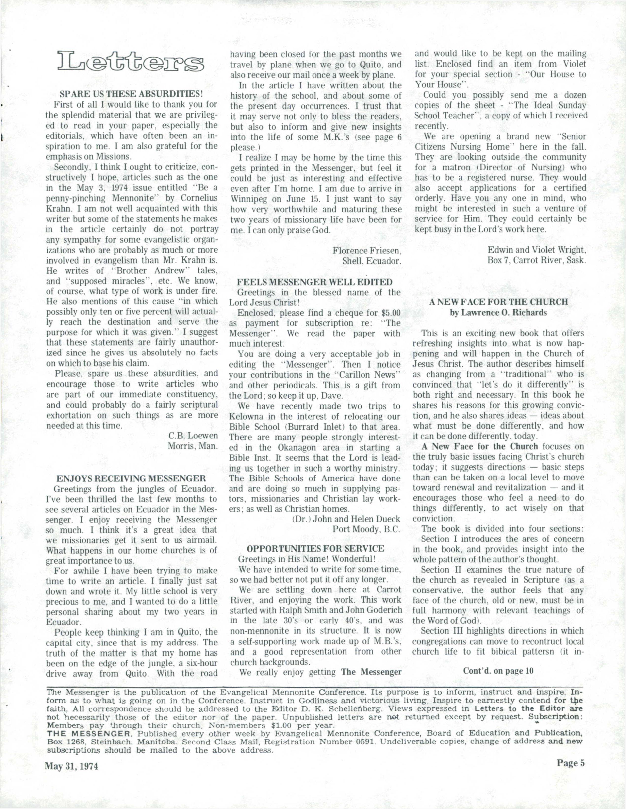 The Messenger May 31, 1974
