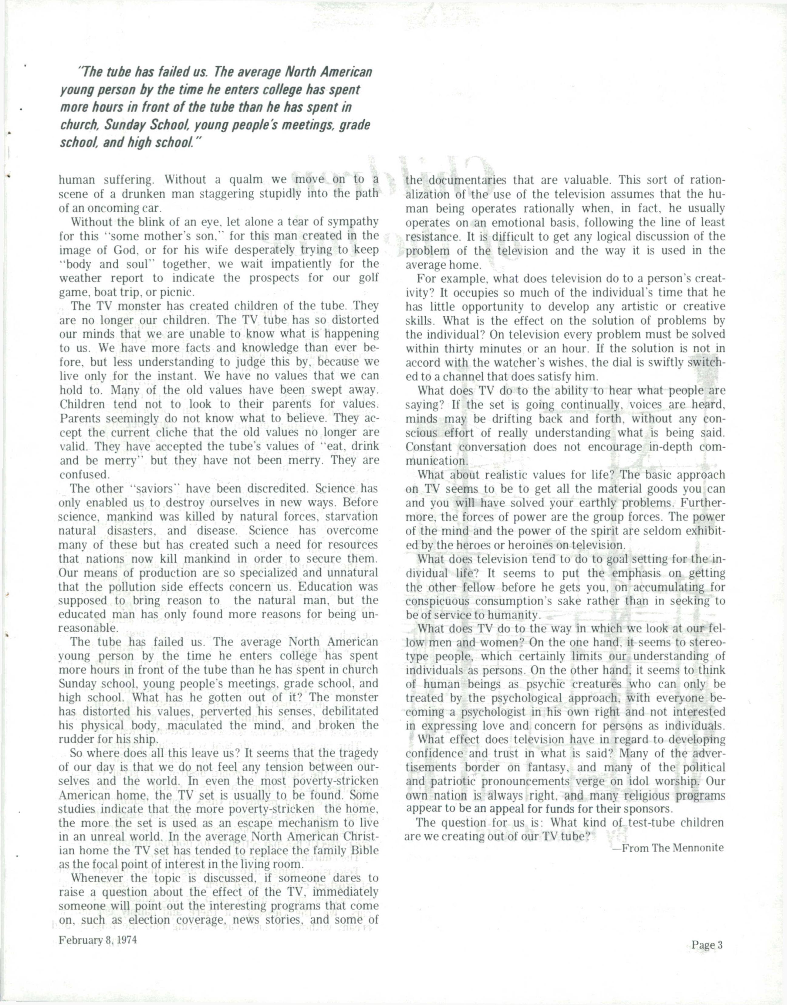 The Messenger February 8, 1974