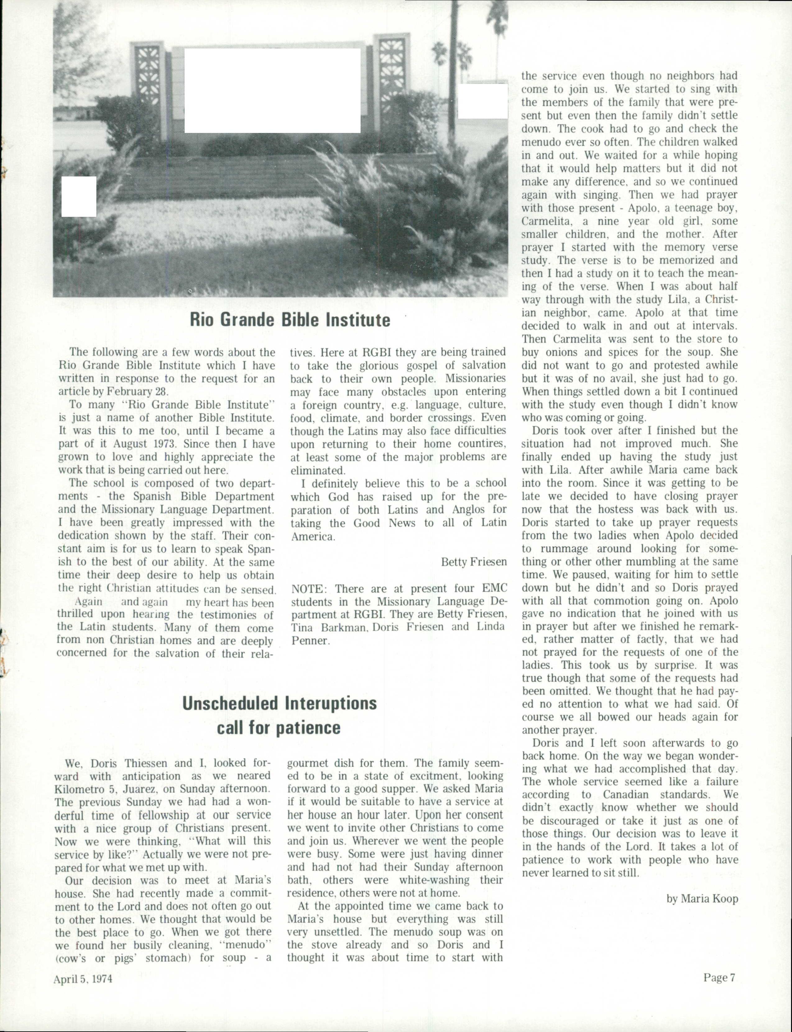 The Messenger April 5, 1974