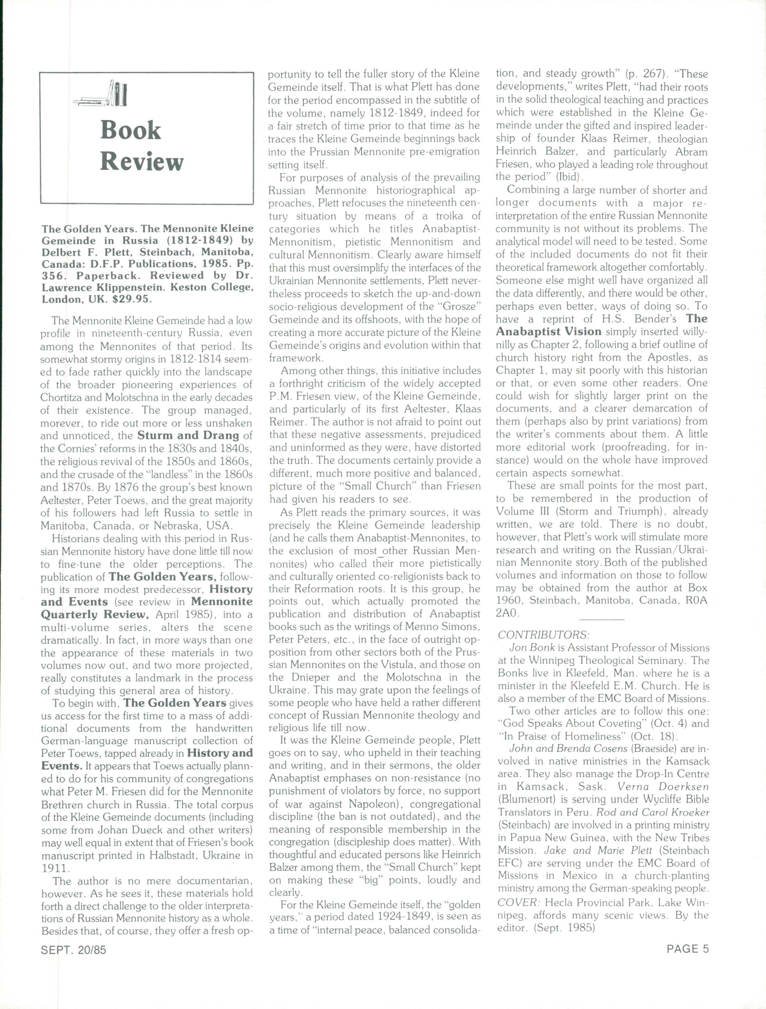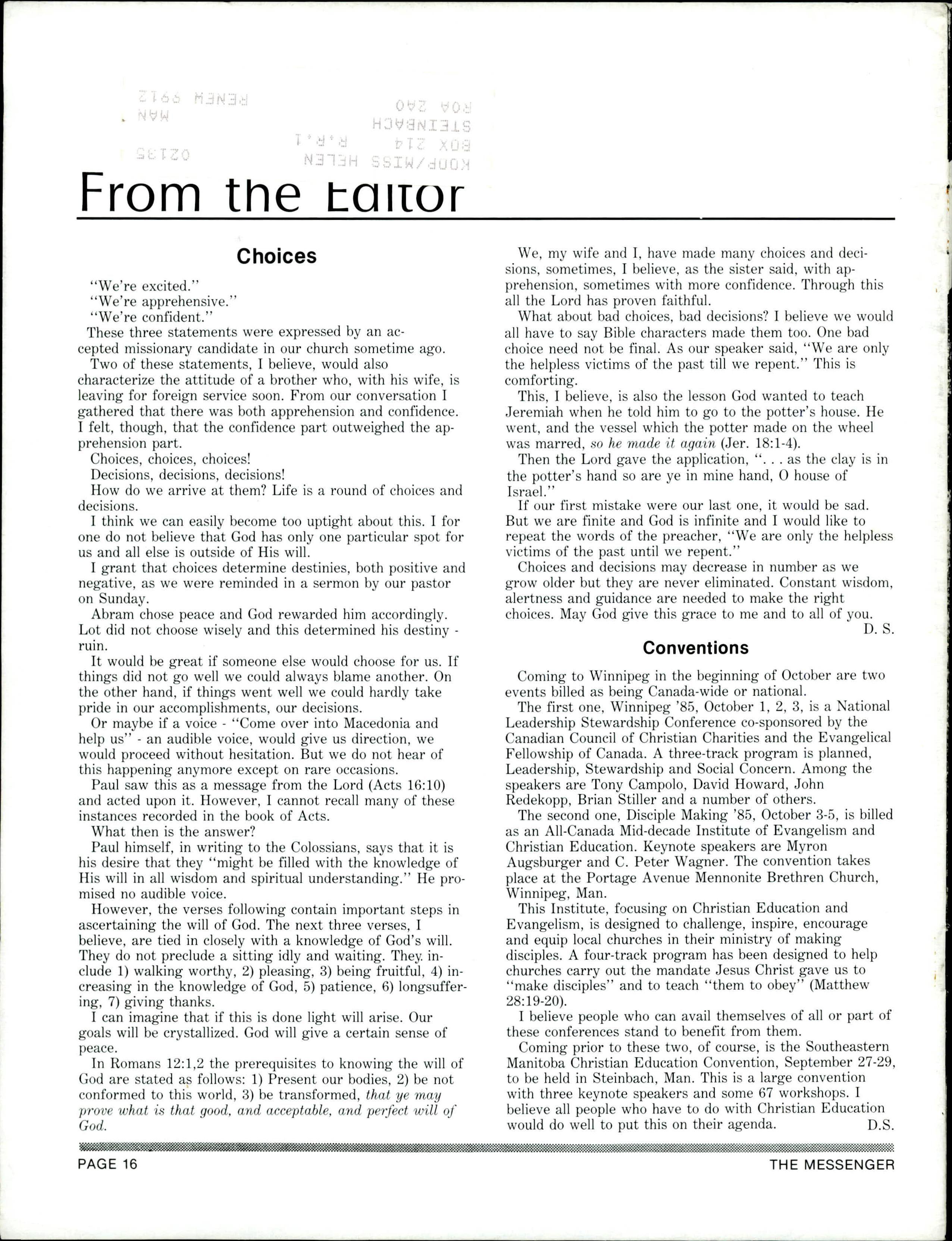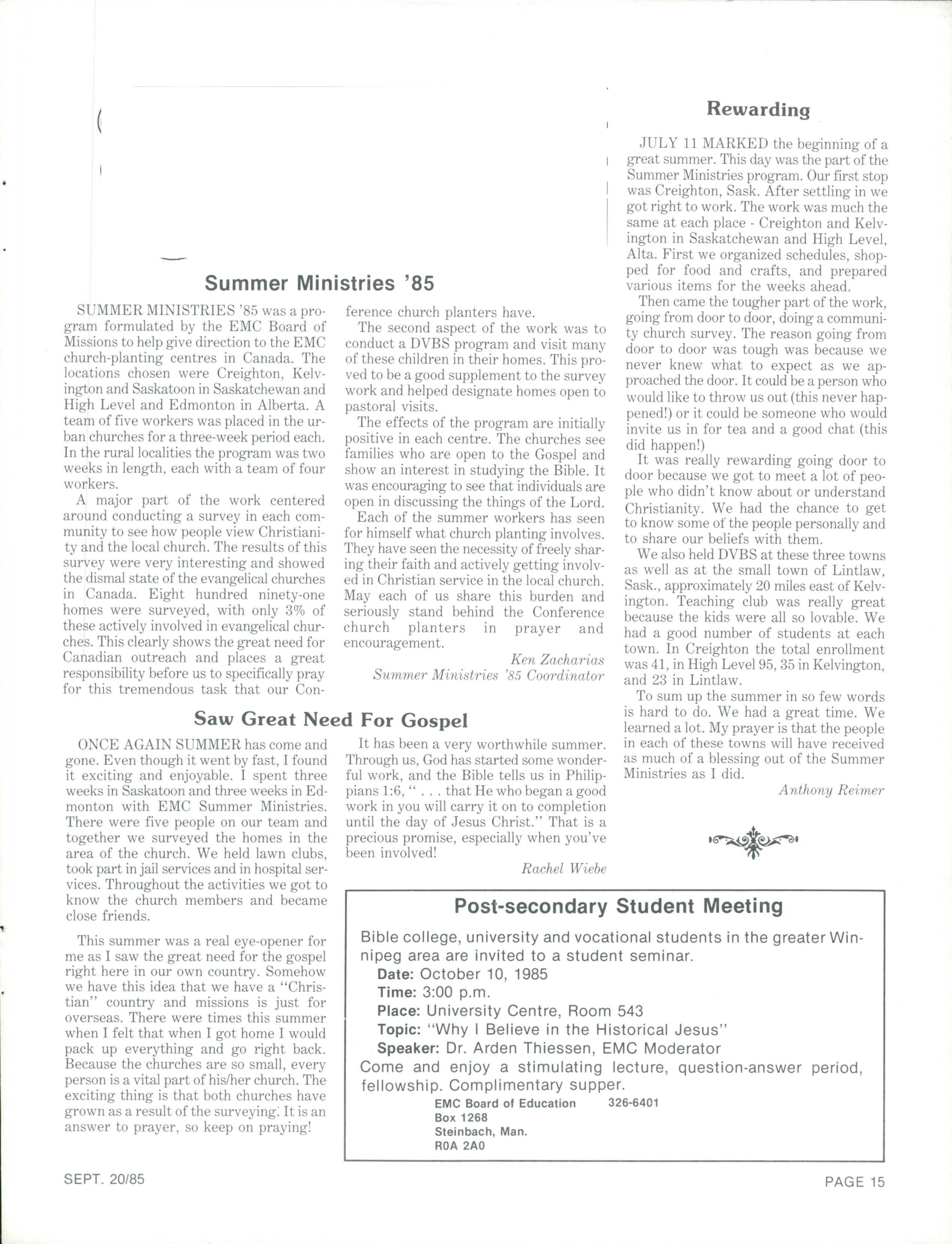 The Messenger September 20, 1985