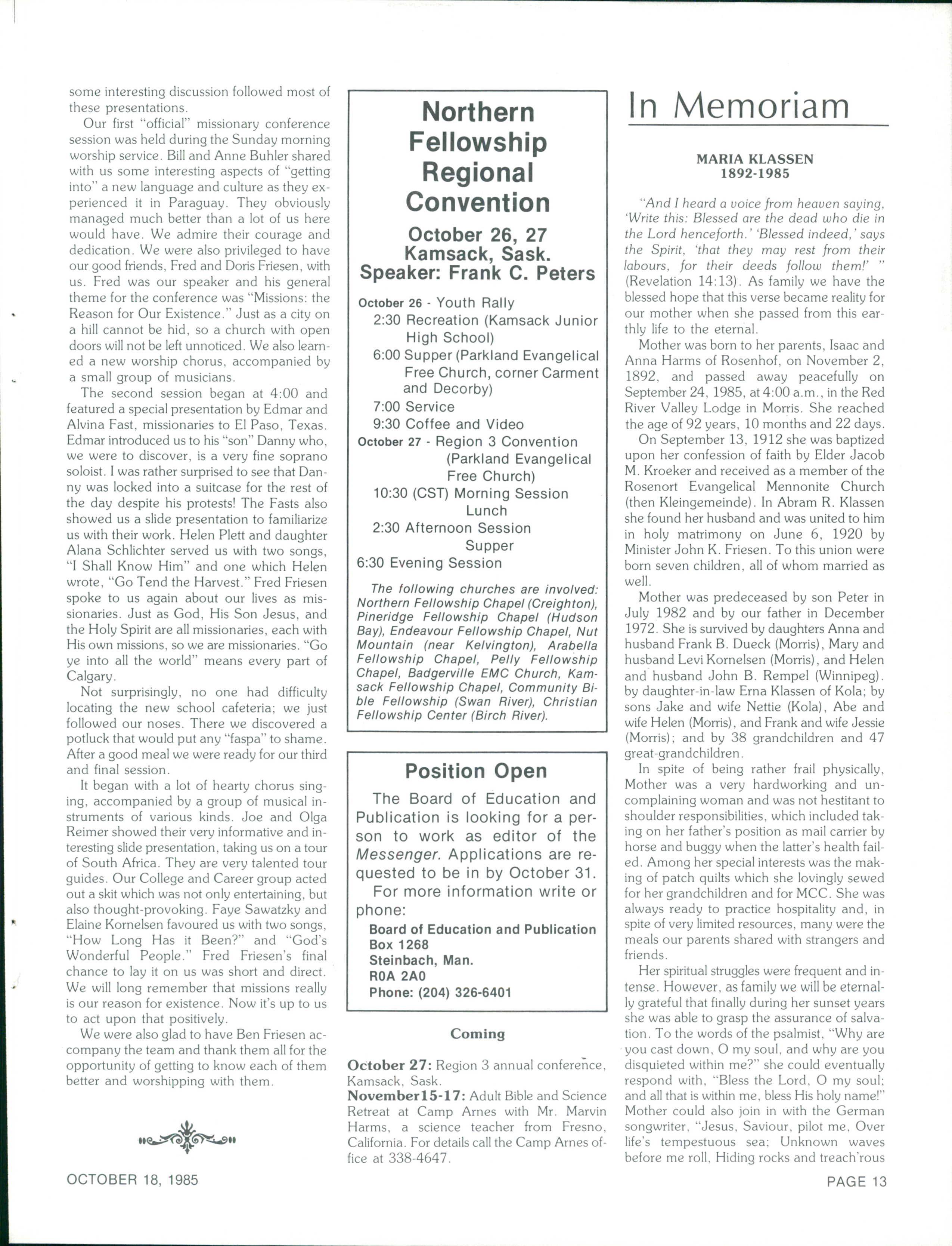 The Messenger October 18, 1985 by The Messenger - Issuu