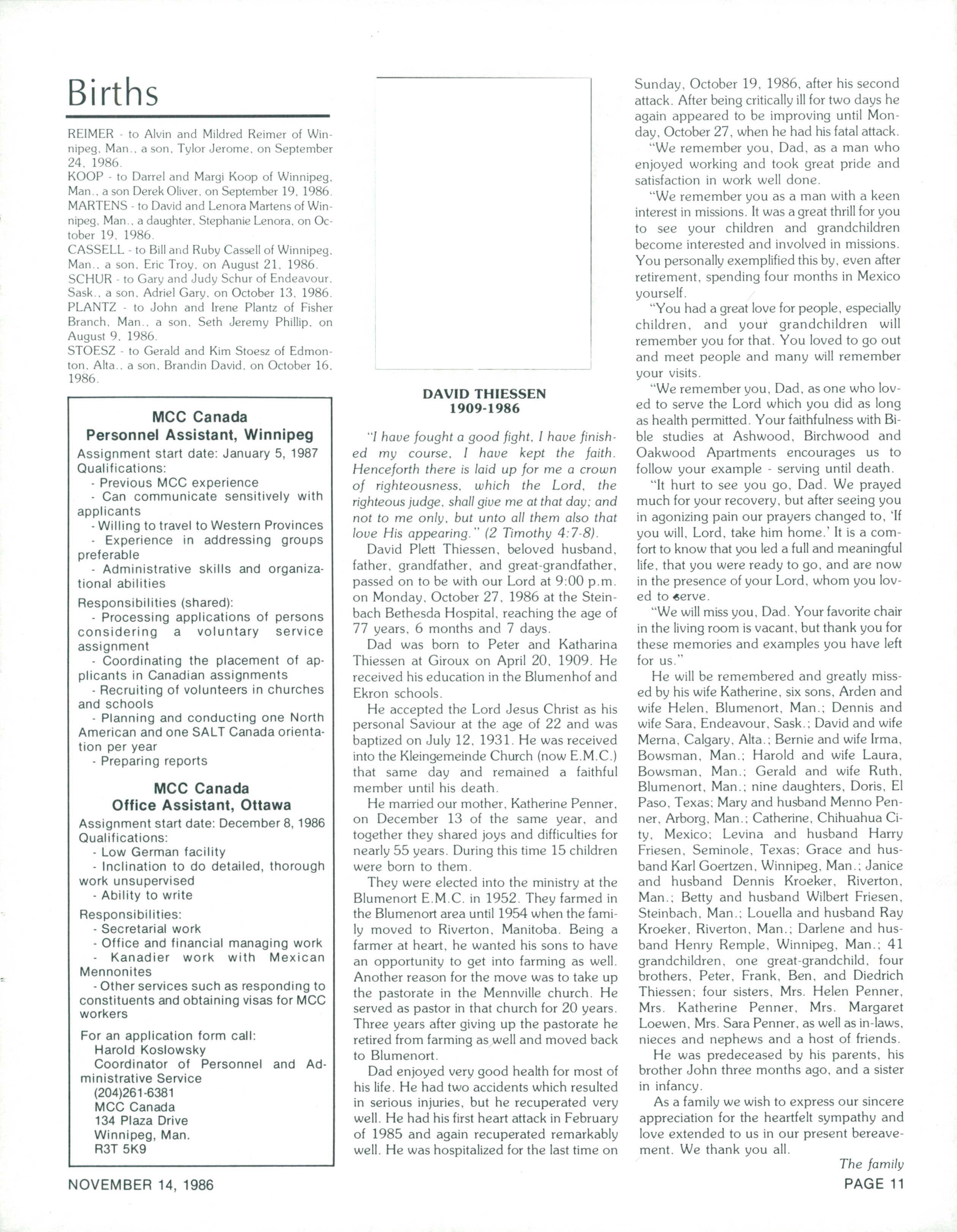 The Messenger November 14, 1986