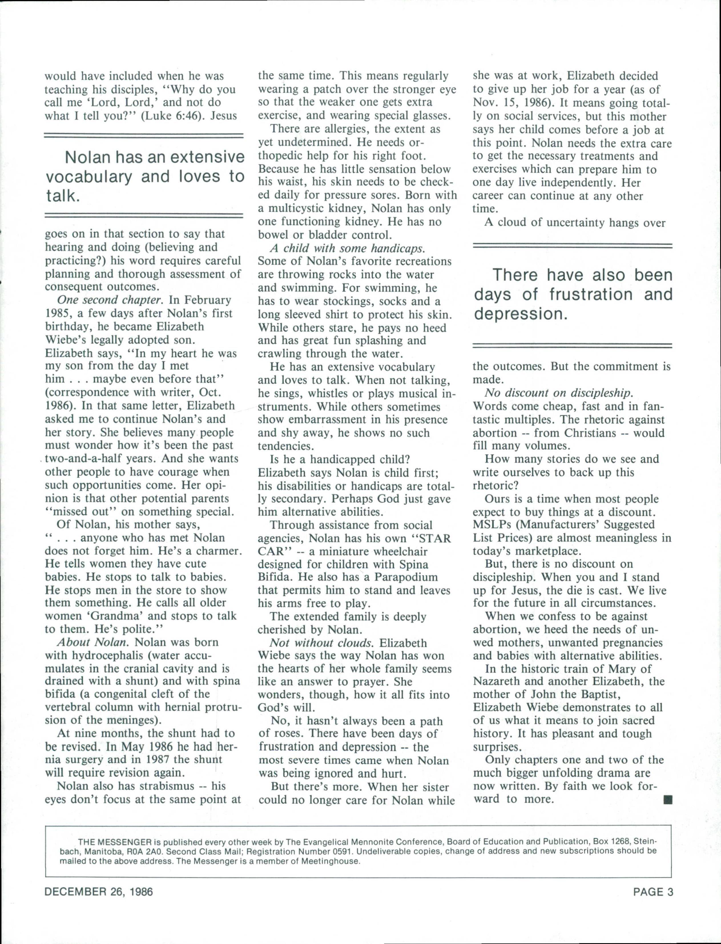 The Messenger December 26, 1986