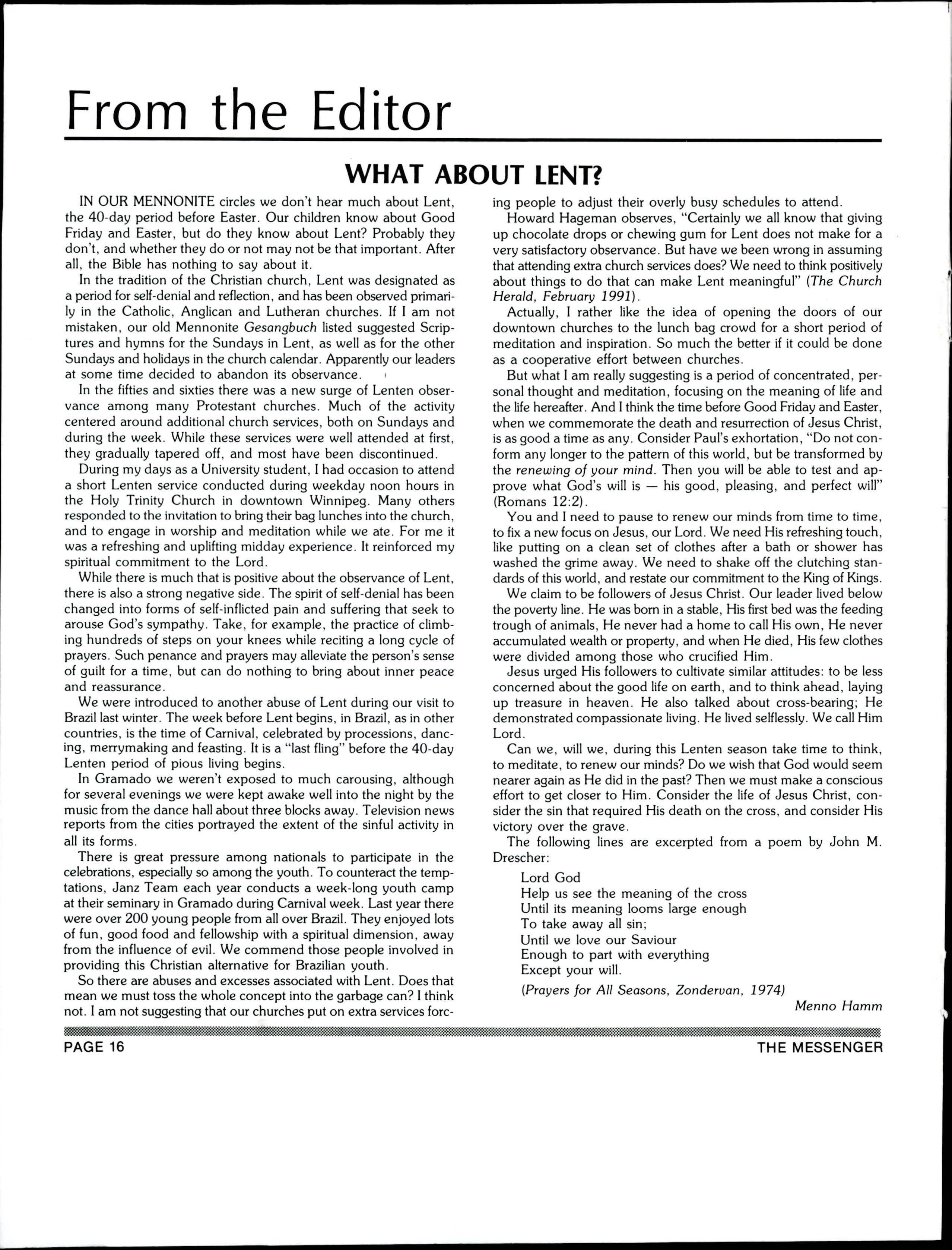 The Messenger March 8, 1991