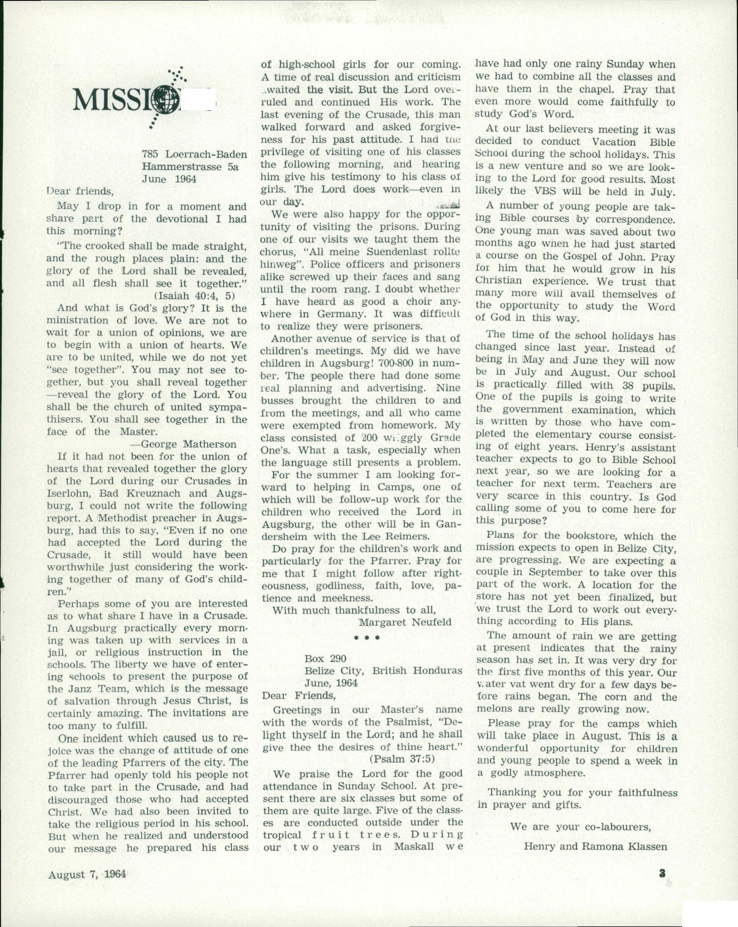 The Messenger August 7, 1964