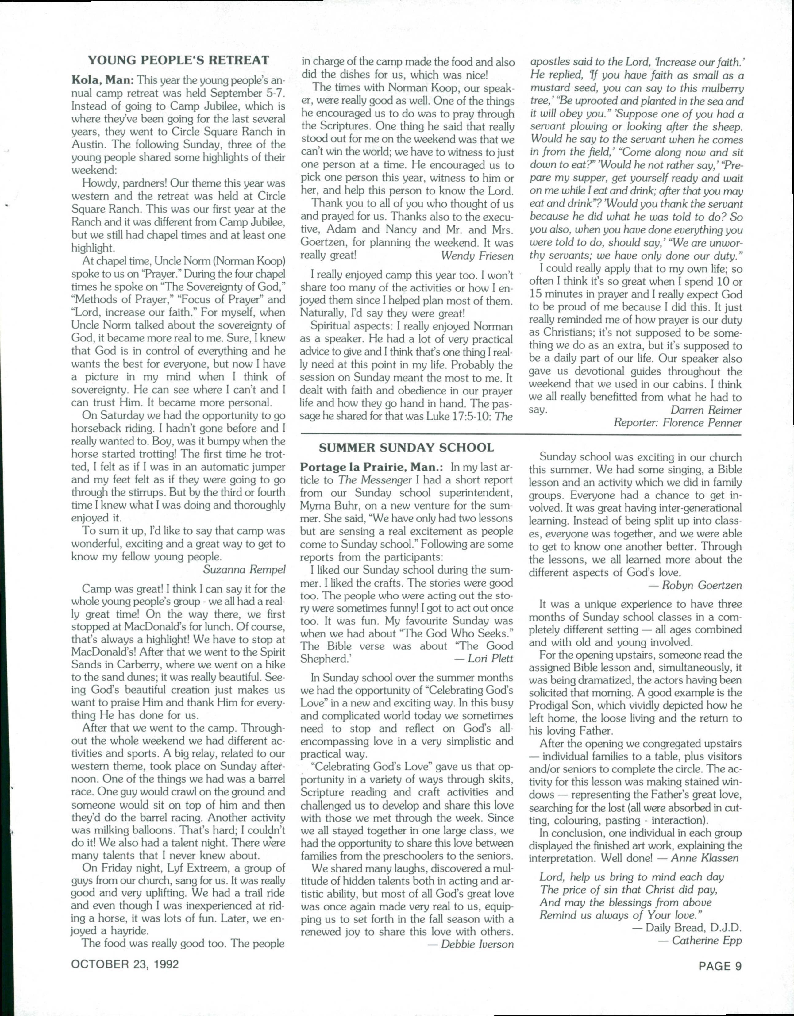 The Messenger October 23, 1992