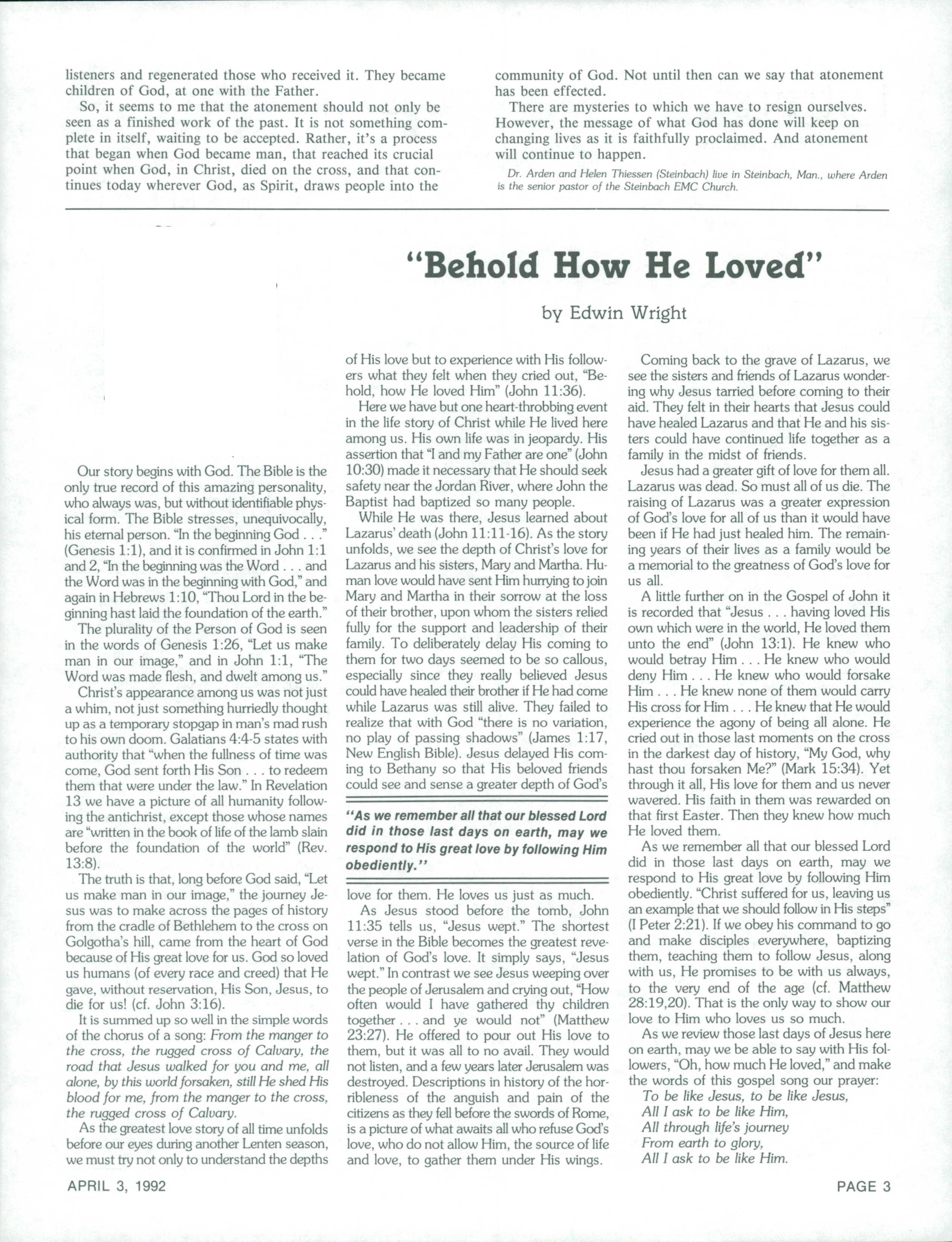 The Messenger April 3, 1992