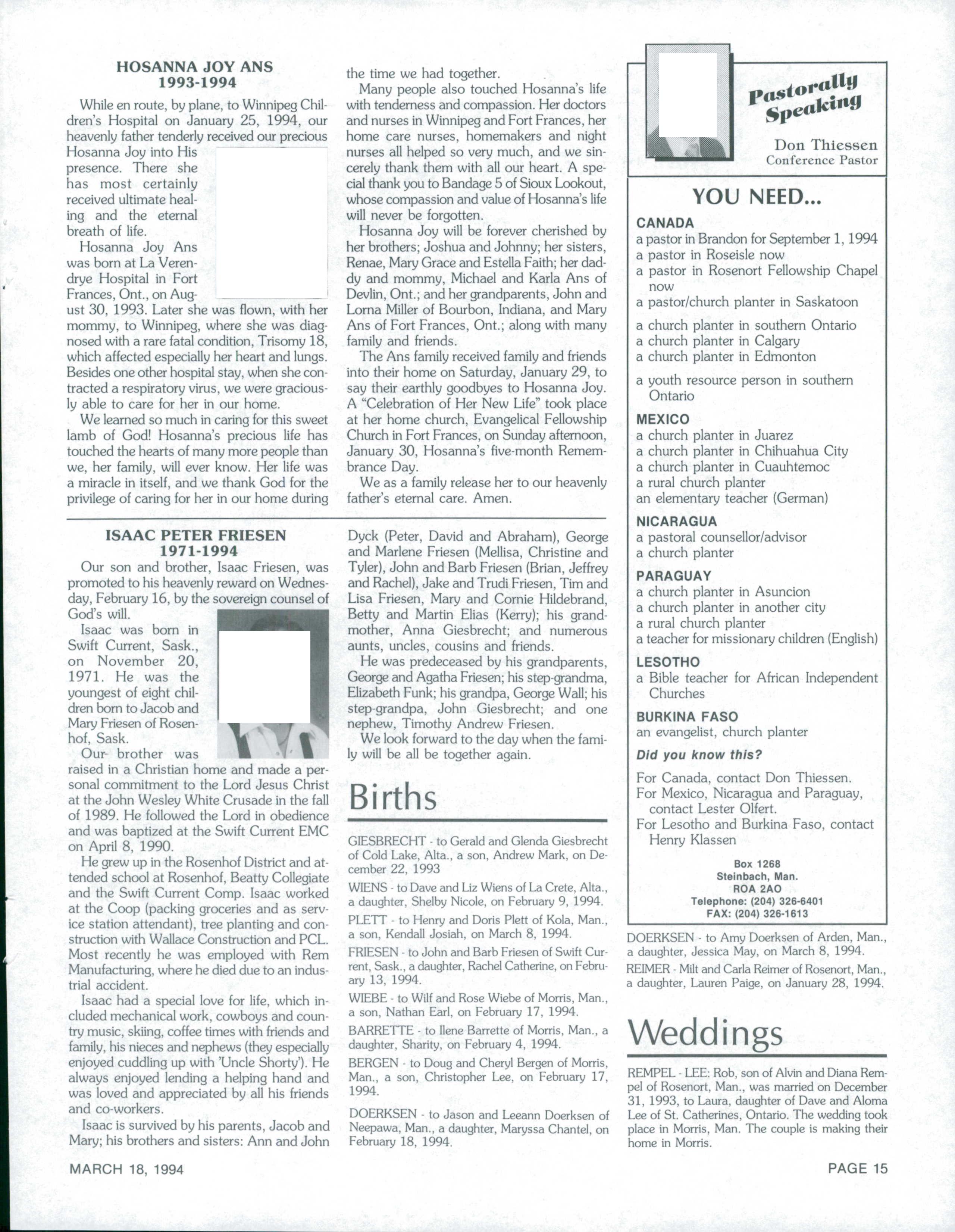 The Messenger March 18, 1994