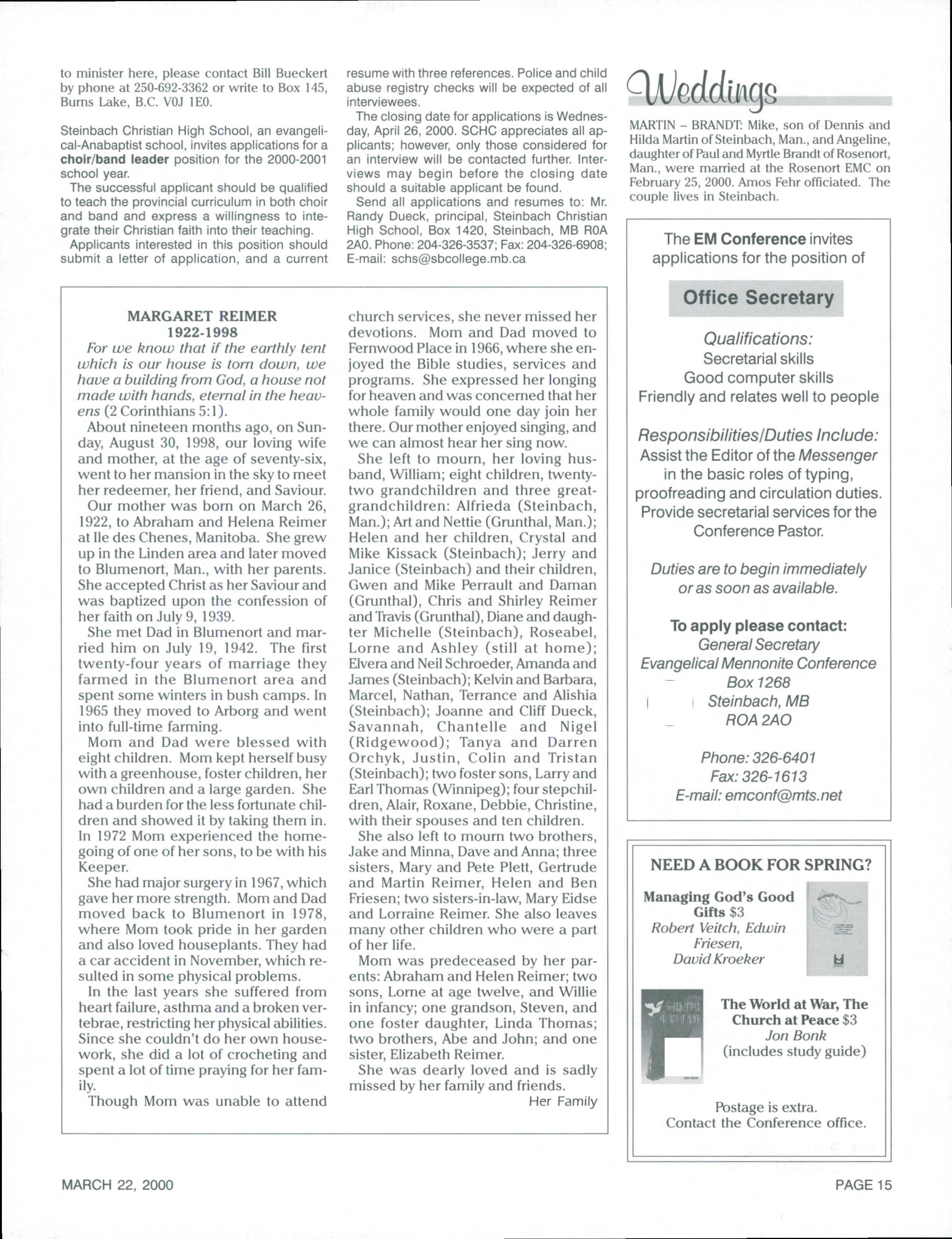 The Messenger March 22, 2000