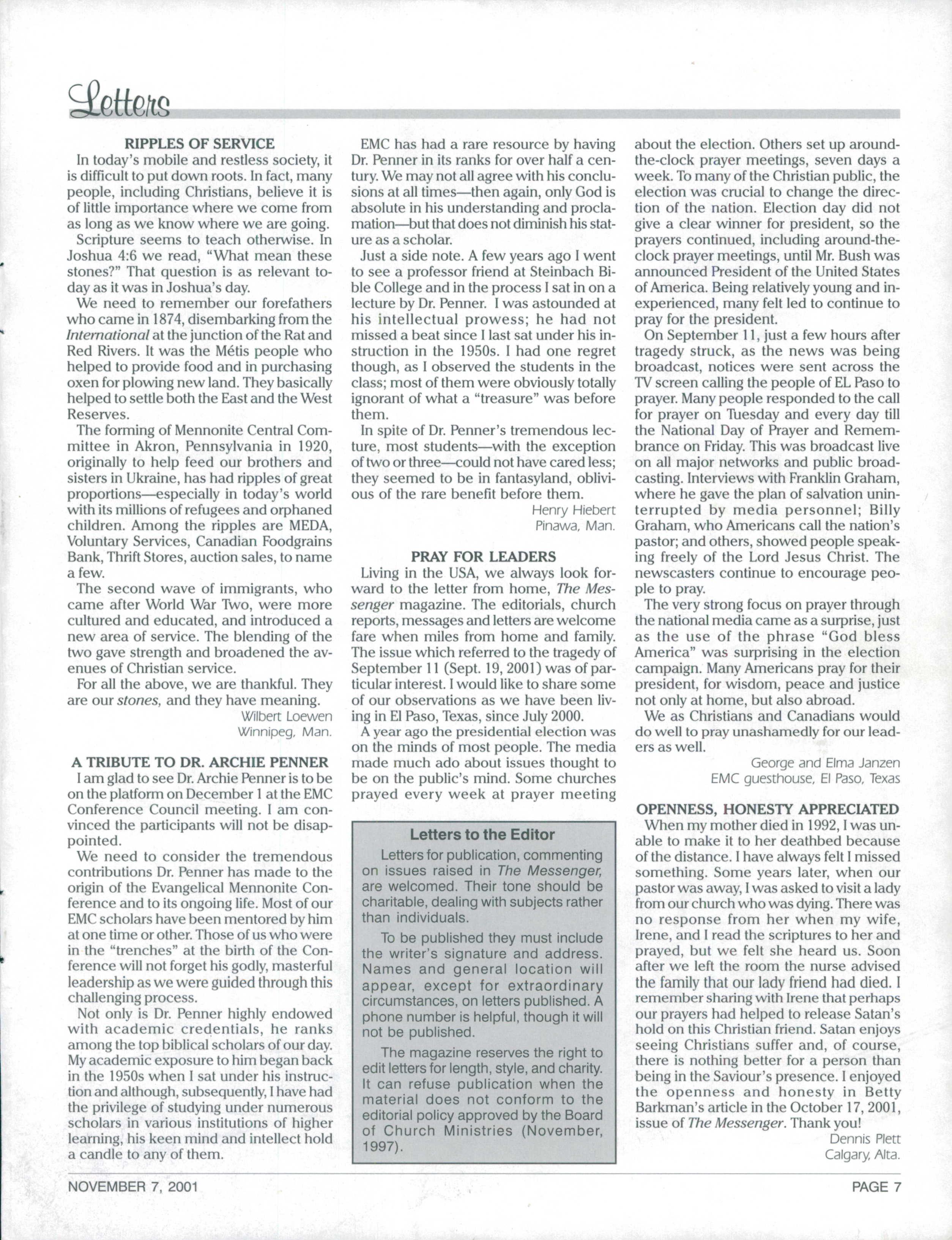 The Messenger November 7, 2001