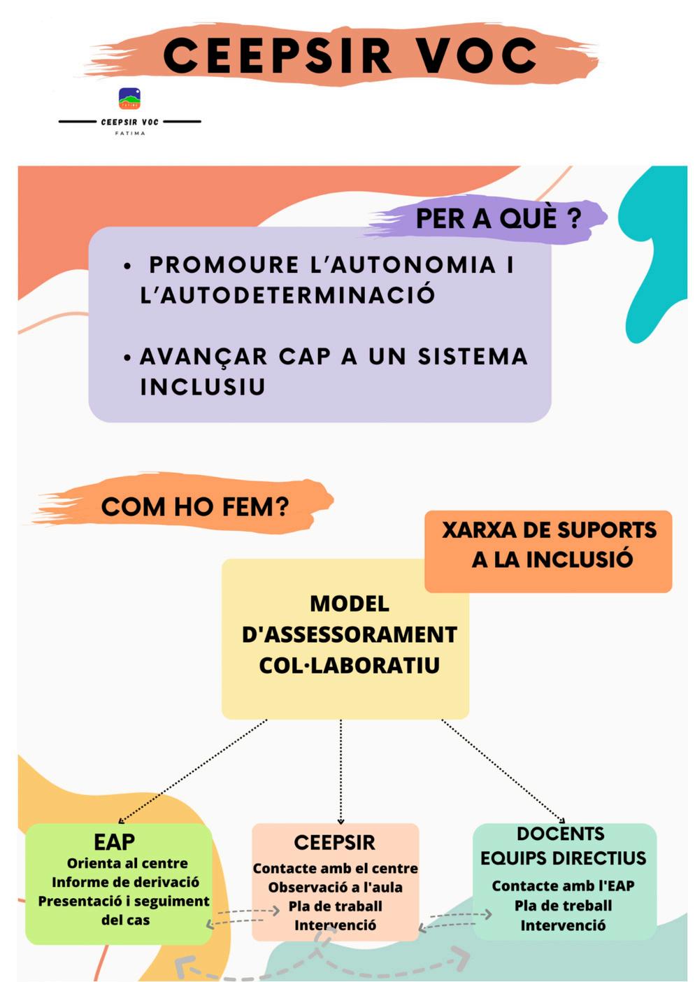 UNA MESTRA DE LA NOSTRA ESCOLA VISITA I ASSESSORA DIFERENTS ESCOLES ORDINÀRIES, DEL VALLÈS OCCIDENTAL, AMB LA FINALITAT D’OFERIR-LOS SUPORTS I MESURES D’ATENCIÓ A LA DIVERSITAT I CONCRETAR LES ACTUACIONS MÉS AJUSTADES PER A L’ALUMNAT AMB NESE (NECESSITATS ESPECÍFIQUES DE SUPORT EDUCATIU). D’AQUESTA MANERA, LES ESTRATÈGIES I METODOLOGIES QUE UTILITZEM AMB ELS NOSTRES ALUMNES, A FATIMA, AIXÍ COM ELS RECURSOS I CONEIXEMENTS QUE PODEM TENIR COM A MESTRES D’EDUCACIÓ ESPECIAL SÓN TRANSFERITS ALS CENTRES D’EDUCACIÓORDINÀRIA.
