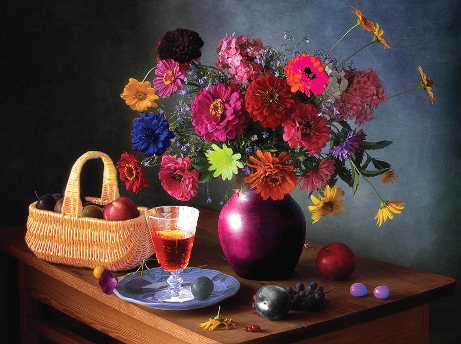 I later chose a gradient background and added a vase in which I would place the two previos images. I used the puppet warp tool to create fun images and fit the figures inside the vase.