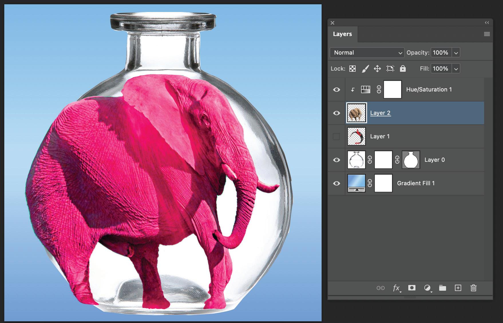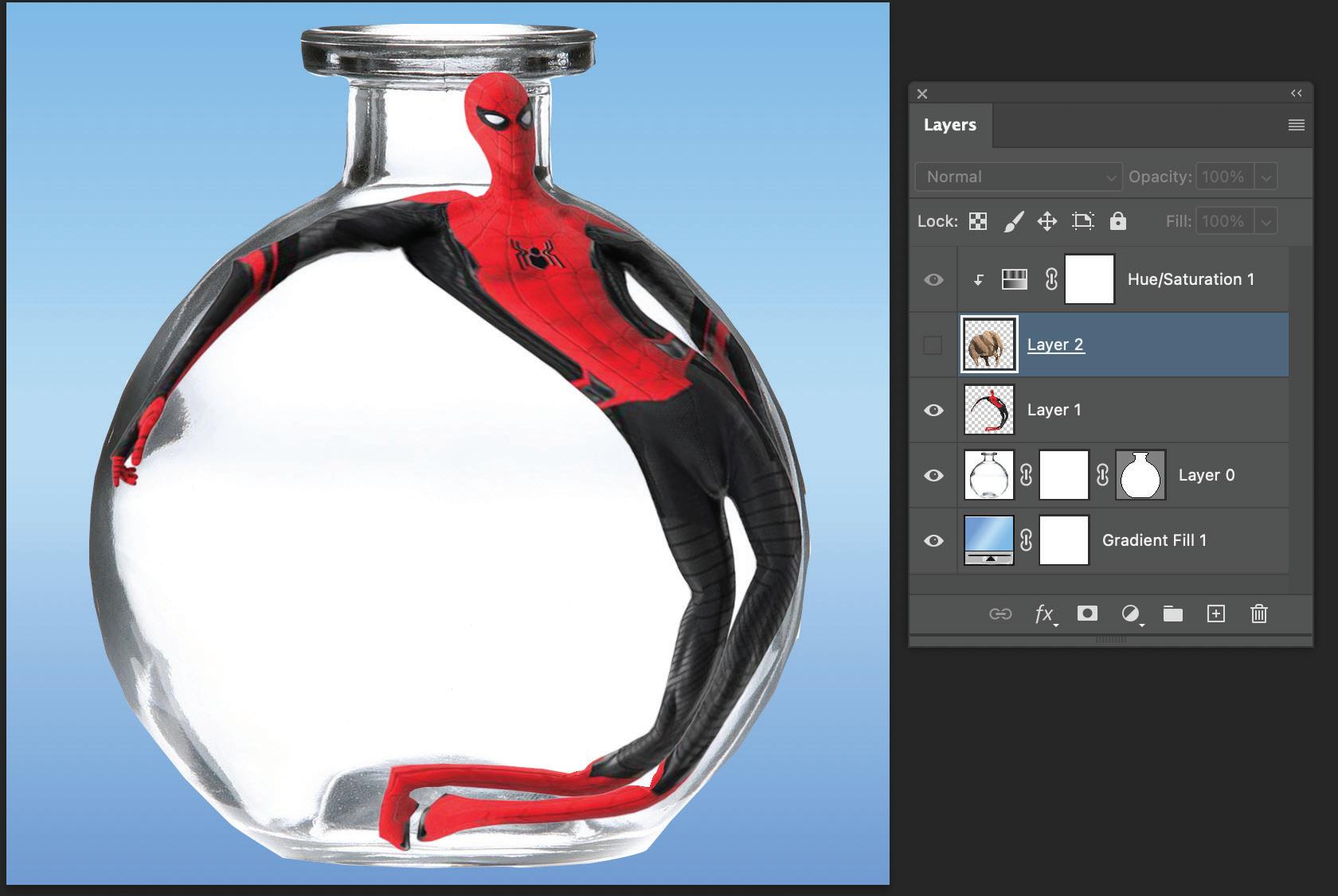 For these projects, I used the same techniques of selecting and masking the images of the spiderman and elepant.