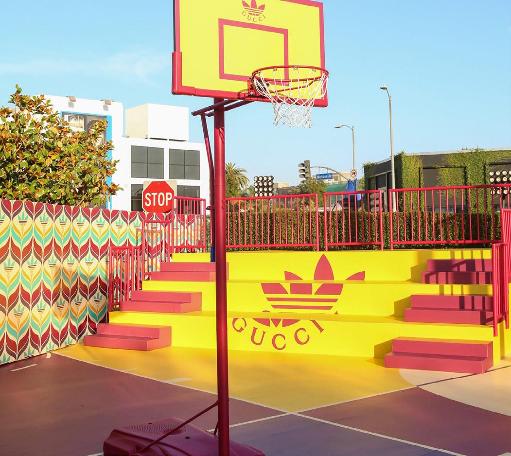 Le maquillage est quant à lui placé sur des présentoirs qui sont des détournements de jukebox, clin d’œil aux bars jazz des années 1930. Ces derniers sont en bois foncés, comme souvent dans le mobilier de boutiques Gucci. Il est accompagné d’une lampe à frange qui vient supporter les plateaux du centre et asseoir l’esthétique cozy et vintage du décor. Un mur de mannequins vient présenter une sélection mariant paire de lunette et maquillage afin de proposer un look « clef en main » aux clients, qui n’ont plus qu’à se servir sur un plateau qui leur est tendu.