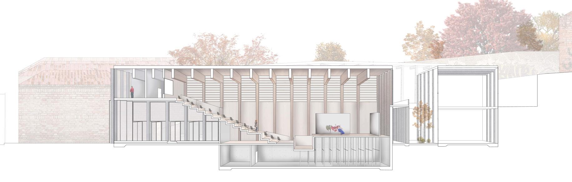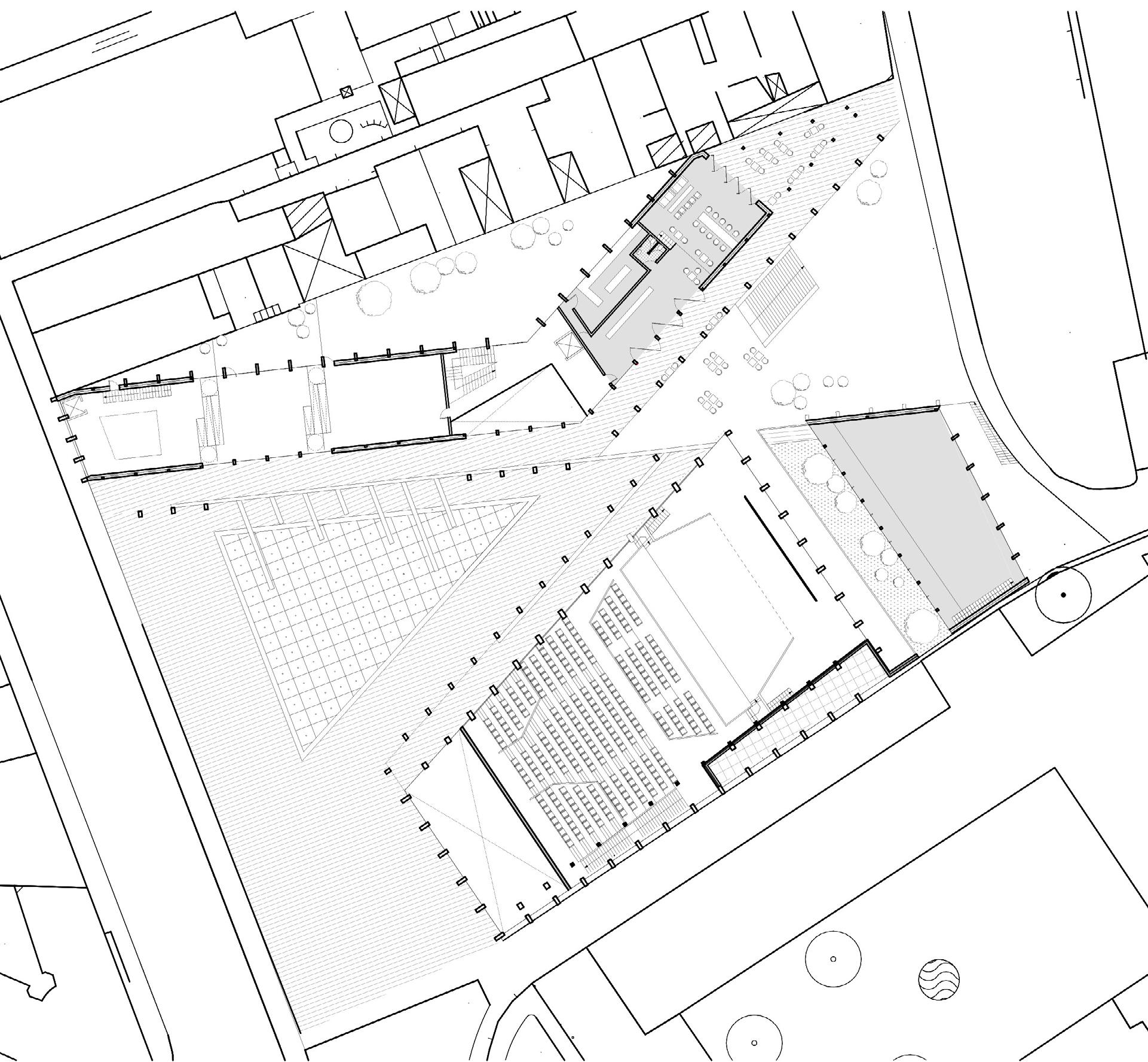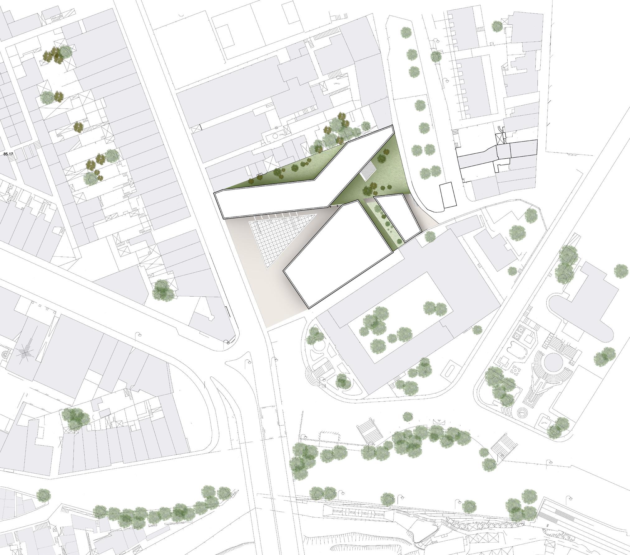 The intention is to develop a versatile space which should take full advantage of its site. This project is a significant civic centre that invites to enter and be part of.