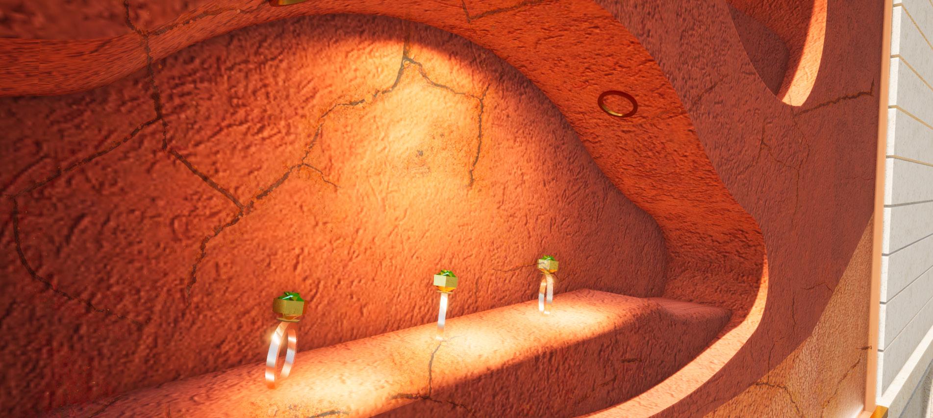 The Cartier showcase on the Boulevard des Capucines warns of soil drought and its consequences. Filled with fine-grained soil/clay and carved by the meticulous furrows of ants, the showcase highlights the preciousness of a collective work and the meticulousness of a craftsman’s work; values of the house. Deliberately devoid of transformed materials, the showcase is entirely eco-designed. The simplicity of its design conveys a powerful and explicit message. It will showcase the new Cactus collection, produced with responsible materials such as Fairminedlabelled ethical gold and synthetic stones not extracted from natural environments in order to reduce the environmental impact of Cartier’s productions.