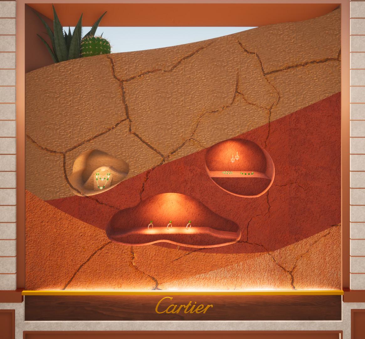 La vitrine Cartier du Boulevard des Capucines alerte sur la sécheresse des sols et ses conséquences. Remplie de terre à granulométrie fine et creusée par de minutieux sillons de fourmis, la vitrine met en lumière la préciosité d’un travail collectif et la méticulosité d’un travail d’artisan; valeurs de la maison. Volontairement dépourvue de matériaux transformés, la vitrine est entièrement éco-conçue. Le dépouillement et la simplicité de son design diffuse un message puissant et explicite. Elle mettra en valeur la nouvelle collection Cactus, produite avec des matières responsables telles que l’Or éthique labellisé Fairmined et des pierres de syntèses non extraites des milieux naturels afin de réduire l’impact environnemental des productions de la Maison Cartier.