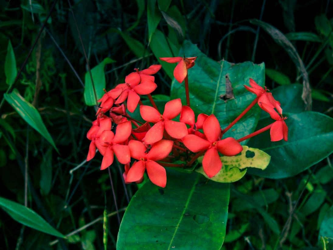 Es un arbusto perenne de la familia de las rubiáceas, conocido por sus pequeñas flores agrupadas en densos racimos de colores vibrantes, que pueden ser rojos, rosados, naranjas o amarillos.
