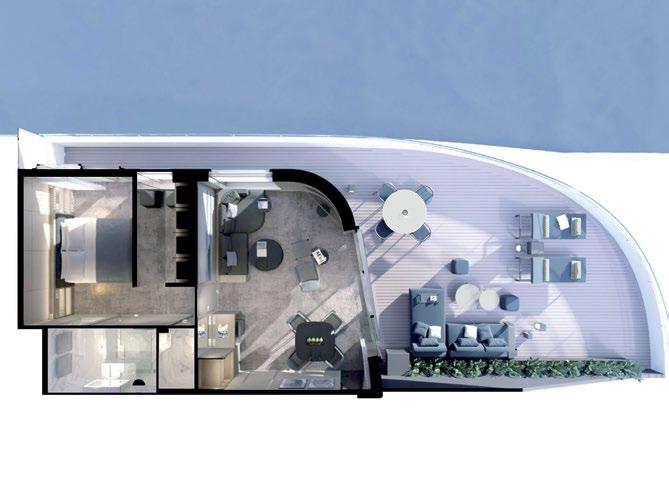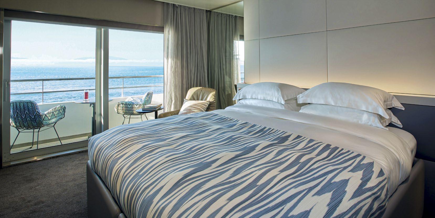 With dazzling views and oversized proportions, the Owner’s Suite is the largest and most prestigious on board. Positioned on the Pool Deck, it boasts a vast private terrace where you can relax and soak up the scenery in style. Inside, there’s a separate bedroom, plush walk-in robe and lounge area.