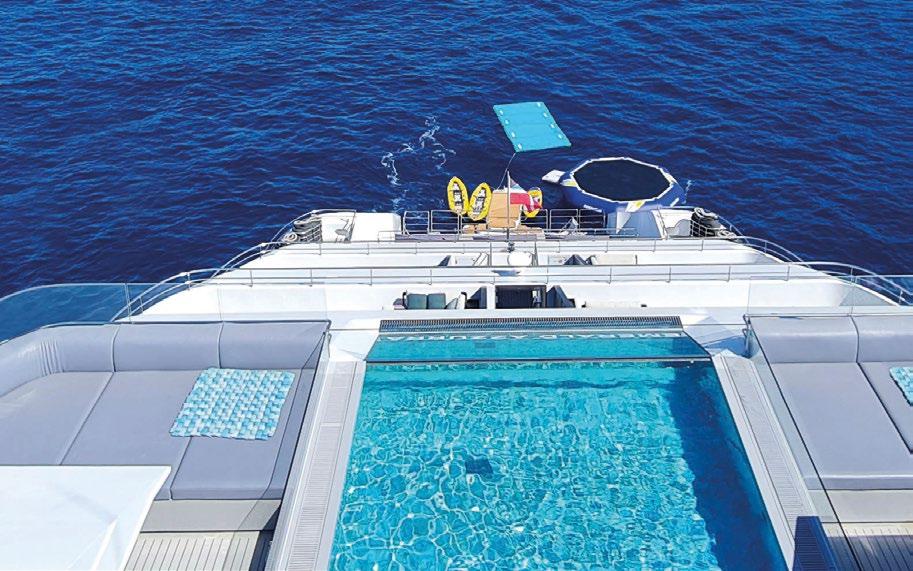 Reach new heights in the middle of the ocean as you enjoy a bounce on this stylish trampoline.