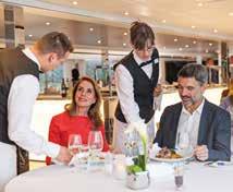 ■ En-suite bathroom with shower, indulgent toiletries, hair dryer, on board complimentary bathrobes and slippers ■ Walk-in wardrobe ■ Complimentary in-suite mini-bar, restocked daily with wine, beer and soft drinks ■ Complimentary Nespresso™ machine ■ Continental breakfast, pre-dinner canapés and after-dinner sweet treats served in your suite ■ Four items of laundry per day ■ An invite to the top table to enjoy dinner with the senior on board team ■ Complimentary water, restocked daily
